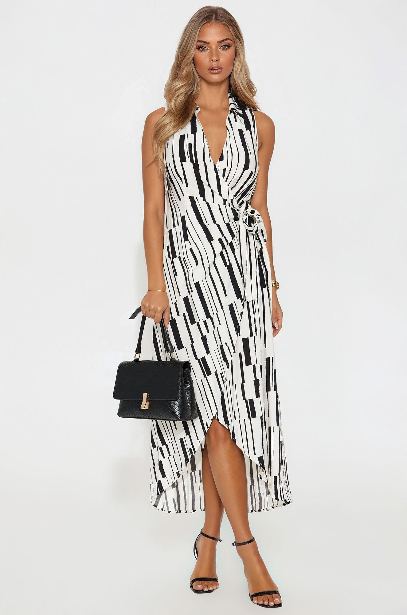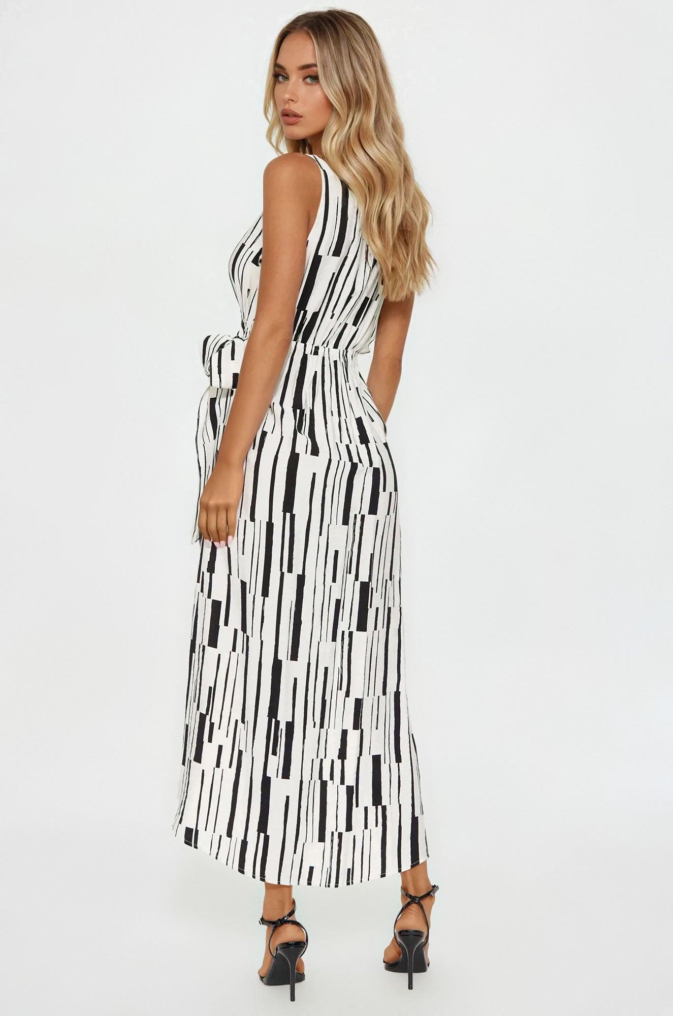Kyrie Tie Waist Maxi Dress - White/Black Female