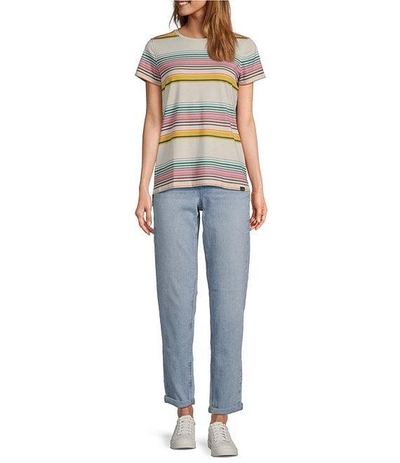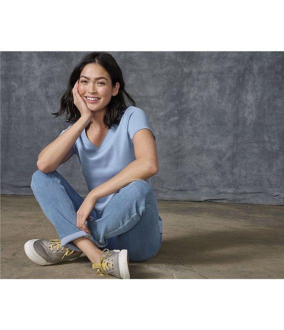 From L.L.Bean, these jeans feature:Soft-washed durable 10 oz. twill denim is hand sanded and slightly distressed for lived-in appealVintage-inspired style features our signature triple-needle stitching and hardware for durabilityRelaxed fit through the hip and thigh areaHigh-rise sits at the waistTapered straight-leg looks great rolled or unrolledBelt loops at waistbandFive-pocket stylingFront fly with zipper and button closureApprox. 28" rolled and 30" unrolled inseamCotton/polyester/spandexMachine washImported.