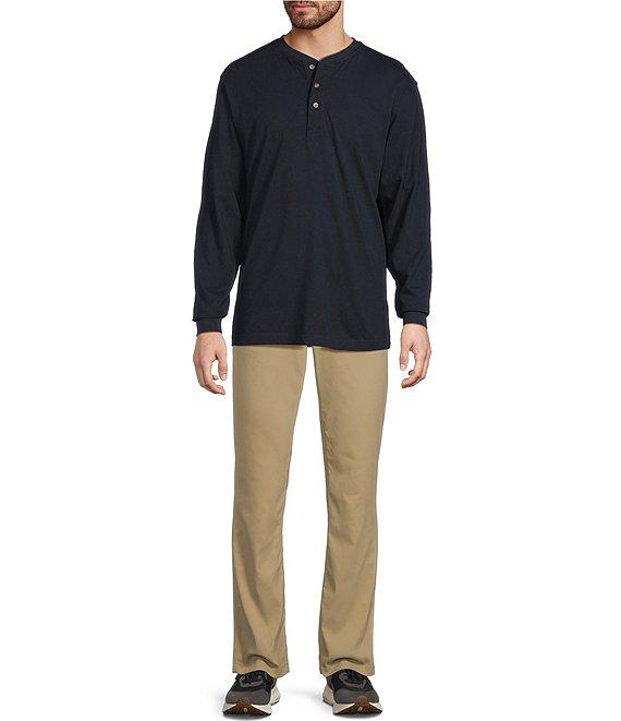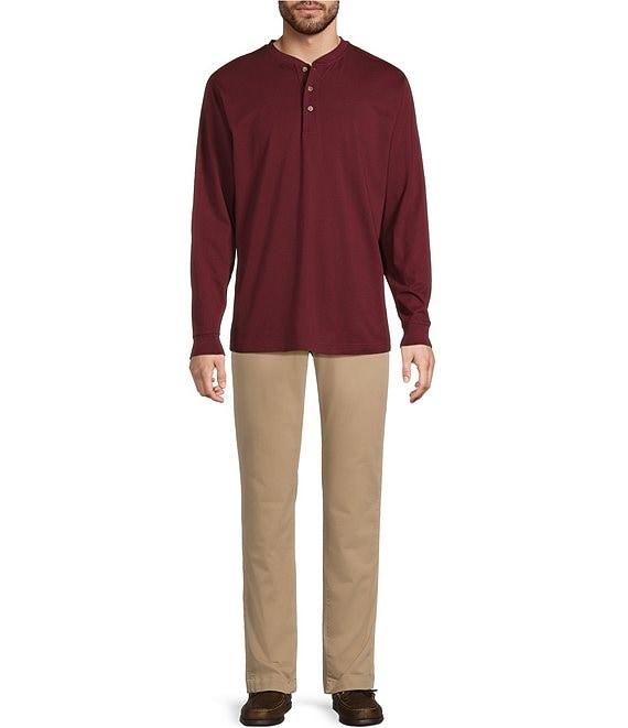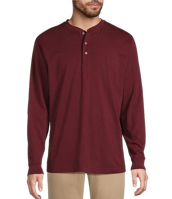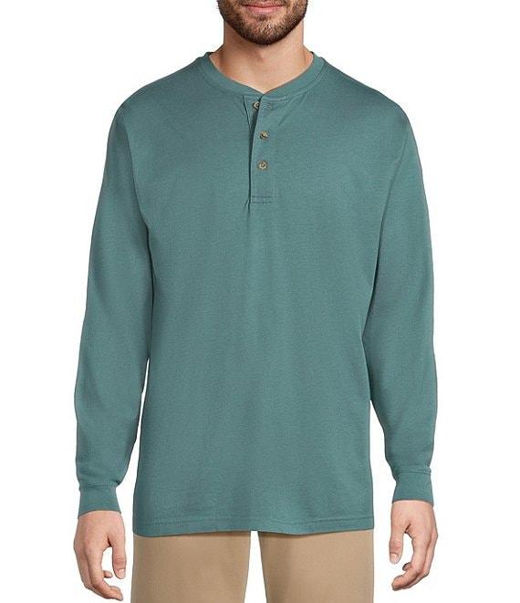 From L.L. Bean, this shirt features: Solid tone Henley neck Long sleeves 3-button placket Durable double-needle stitching Tagless interior label Straight hem Wrinkle resistant Knit jersey fabric Cotton/elastane Machine wash/tumble dry Imported.
