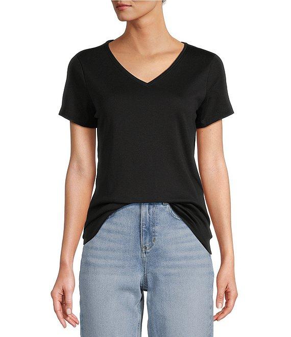 From L.L.Bean, this shirt features:v-necklineshort sleevespullover constructionSupima® cotton grown in the USA.Interlock knit for a smooth feel inside and out.machine washable/tumble dryMade in the USA.