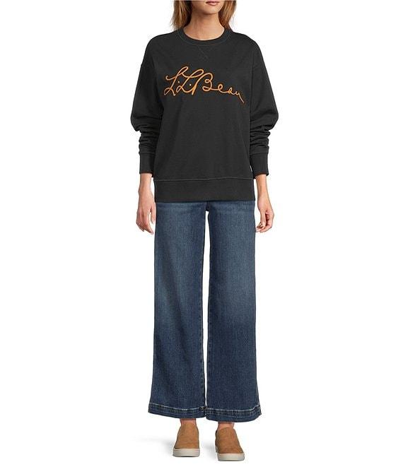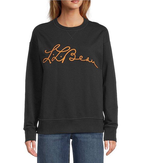 From L.L.Bean, this sweatshirt features: Knit fabrication Crew neckline with ribbed trim and decorative herringbone tape Long sleeves L.L.Bean archive signature camping graphic Straight ribbed hemline Pullover construction Approx. 24" length Body; cotton/polyester; trim: cotton/spandex Machine wash Imported.