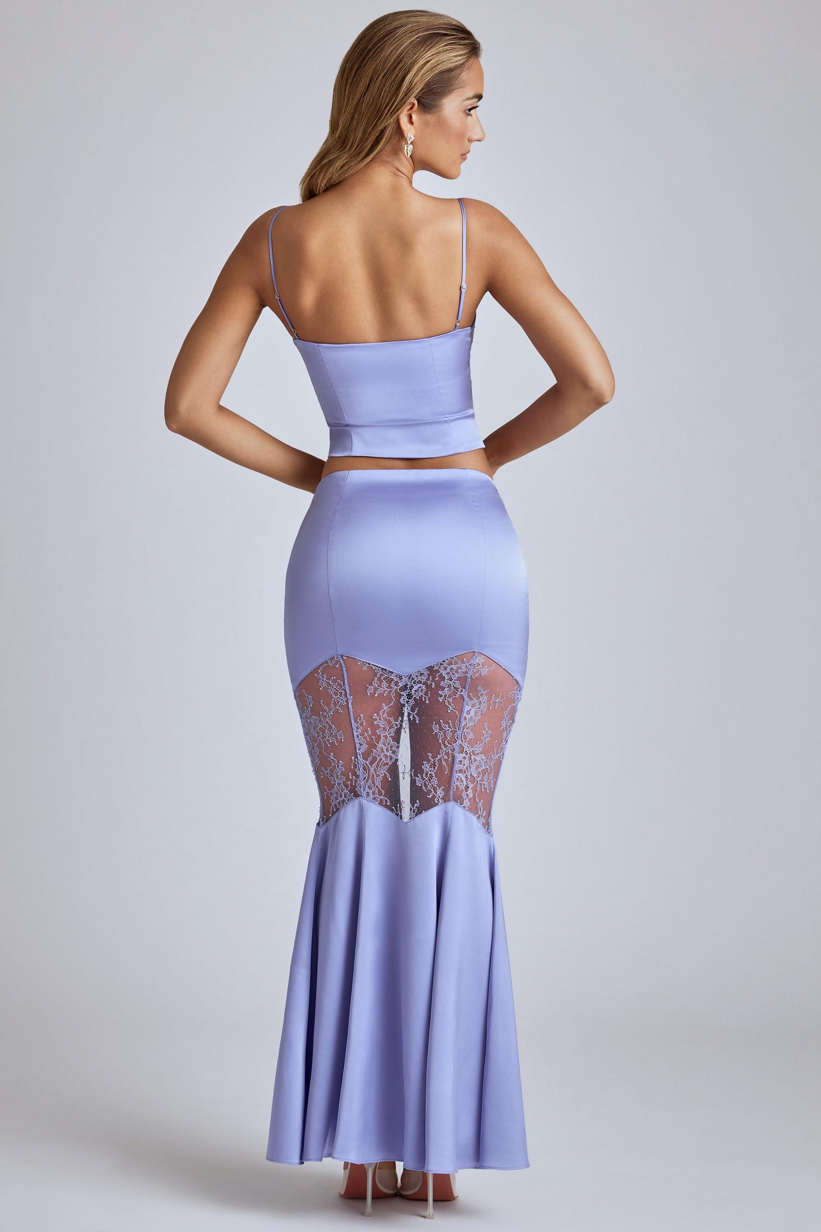 Create a romantic co-ord look with the Sofie gown skirt. Designed for special dates, Sofie is cut from our premium satin fabric and features a sheer lace panel at the knee. Its mid-rise fit and elegant fishtail hemline complement the Bria lace crop top perfectly. Fitted mid-rise waist Discrete side zipper Sheer lace paneling Bodycon fit Fishtail hem Maxi length, approx. 108 cms based on a UK size 8 Product code: 8085 We do our best to ensure that our photos are as true to colour as possible. However, due to inconsistencies in monitors, digital photography, and production variations, we cannot guarantee that the color you see on your screen accurately portrays the true color of the product.