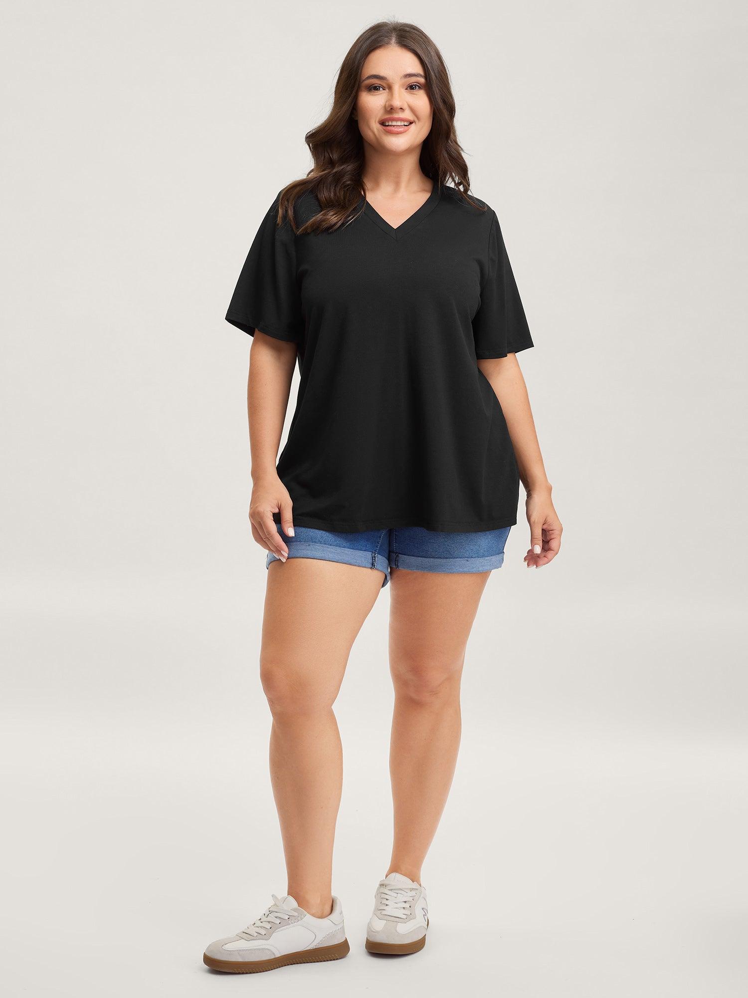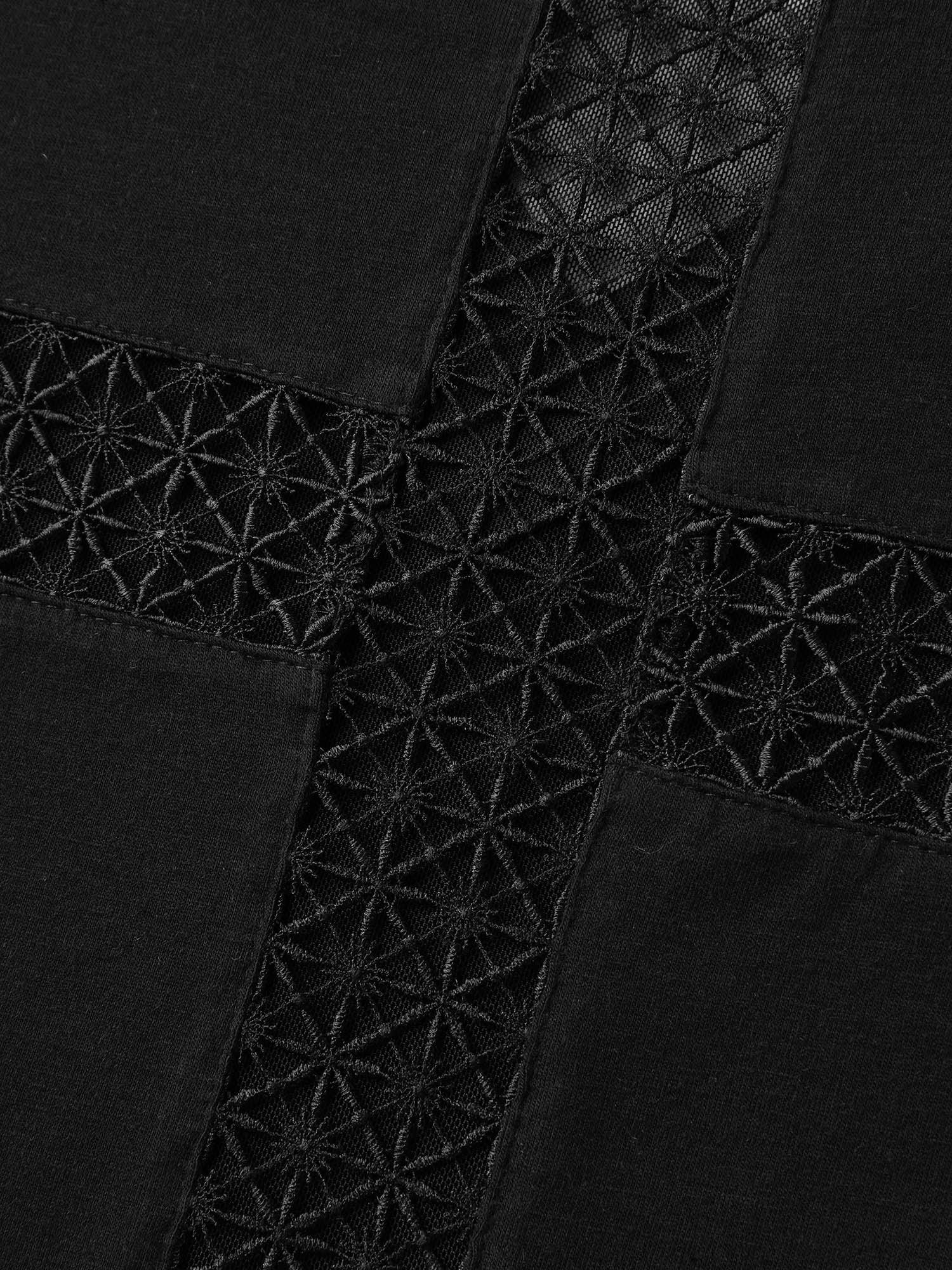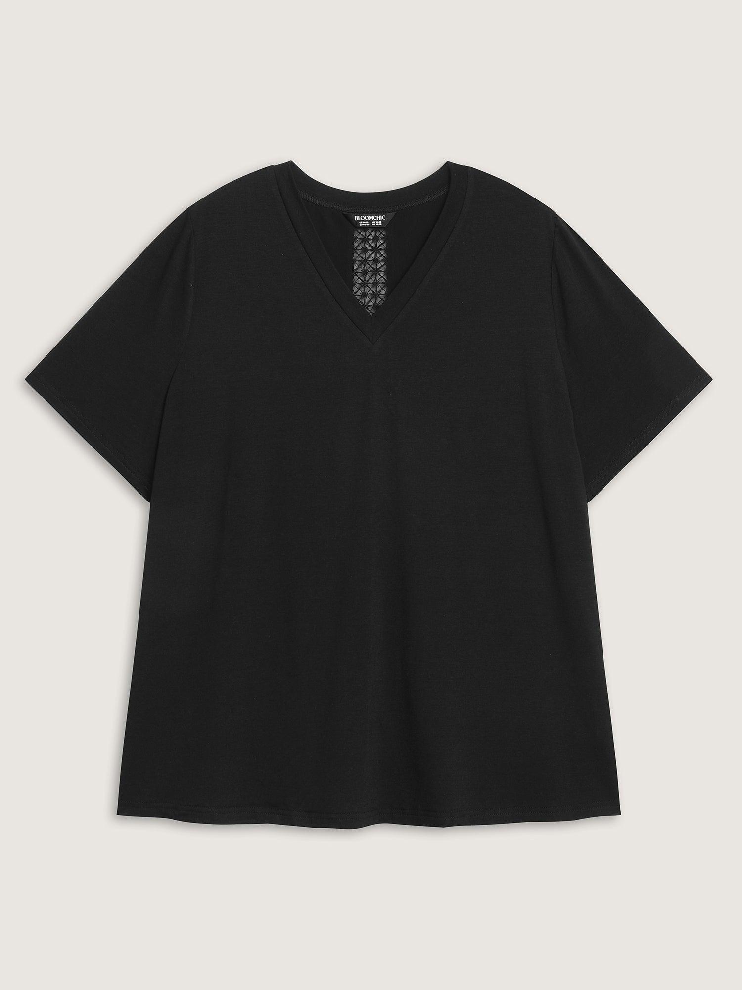 Lace Ribbon V-Neck Relaxed Fit T-Shirt Female