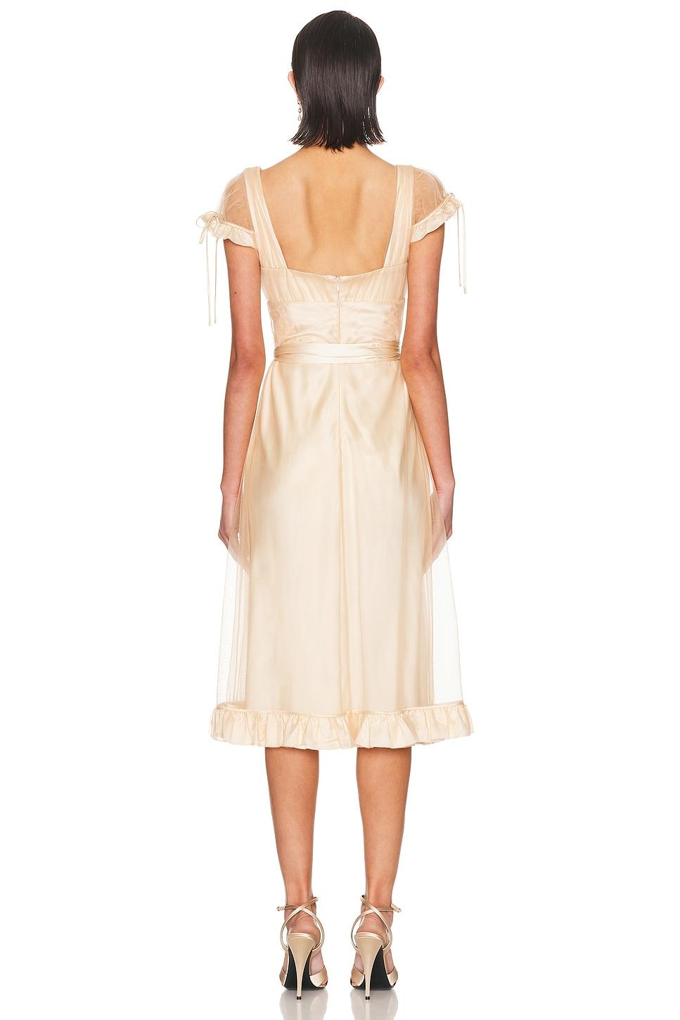 dressSelf & Lining: 100% silkContrast Fabric 1: 90% polyamide, 10% spandexContrast Fabric 2: 67% cotton, 33% polyamide / Dry clean only / Fully lined / Hidden back zip closure / Detachable belt with tie closure / Front embroidered floral design / Bow detailing at shoulder straps / Midweight satin fabric / Made in China / Our Style No. MRPF-WD52 / Manufacturer Style No. MP2498 / Model is wearing size S.