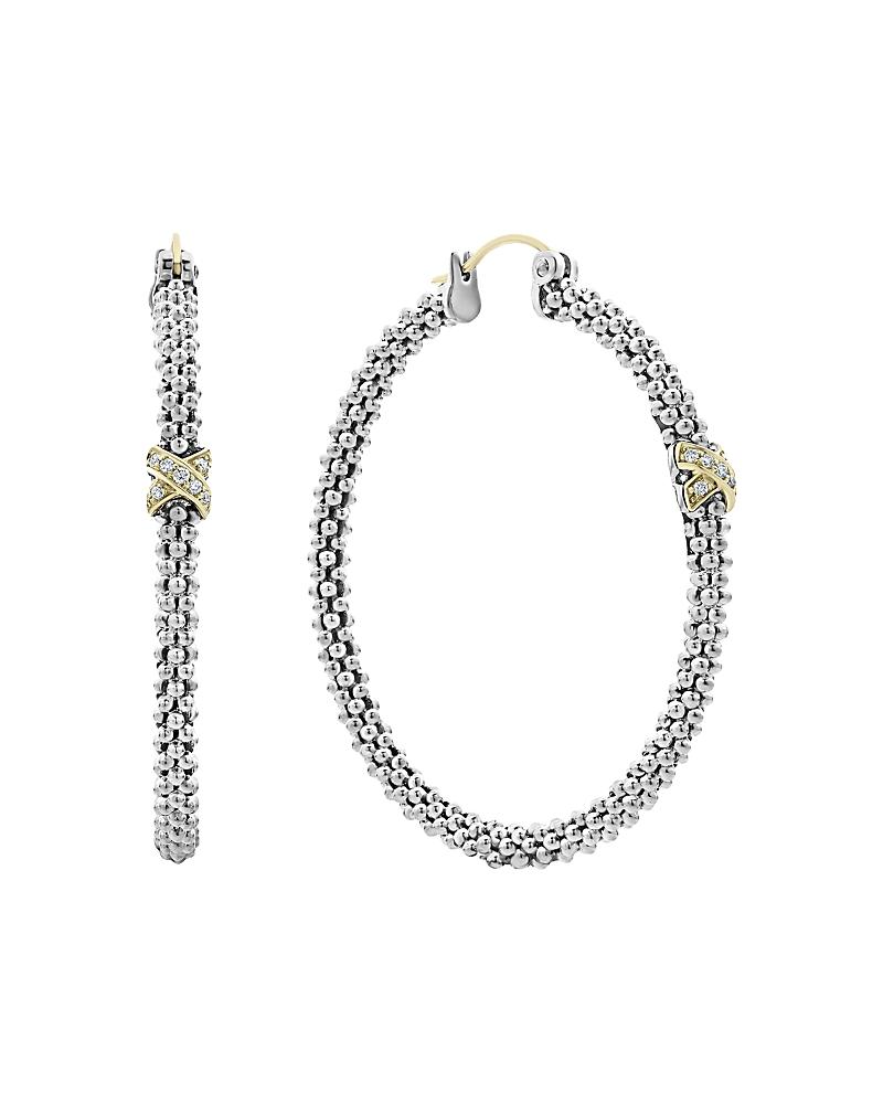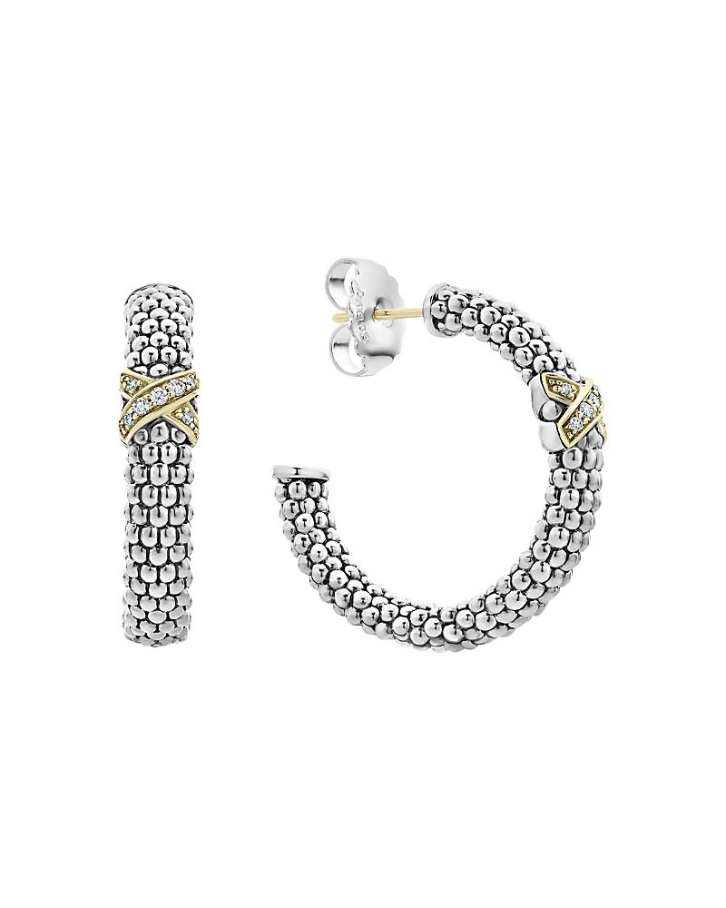 Lagos Sterling Silver & 18K Yellow Gold Embrace Diamond Hoop Earrings