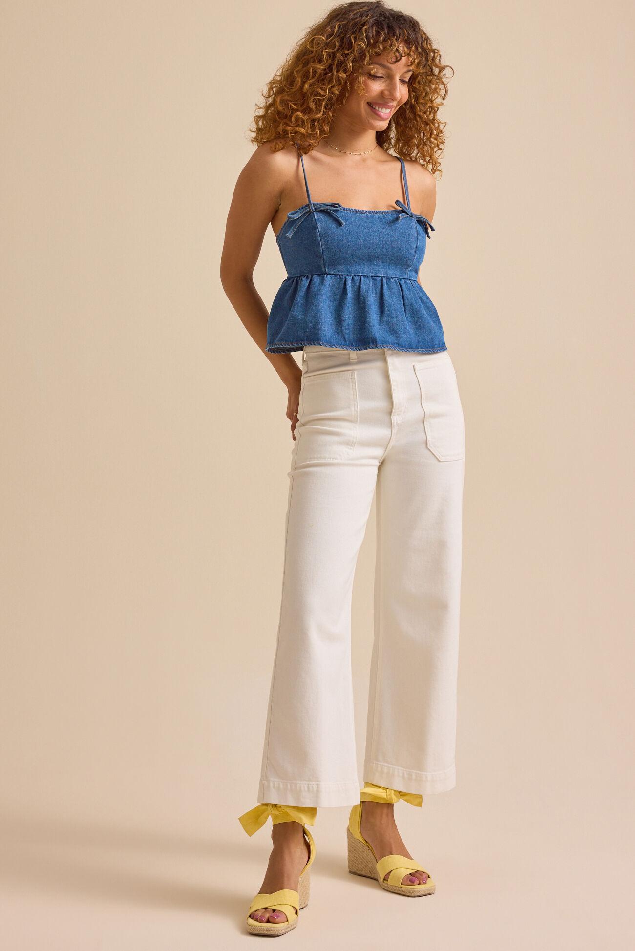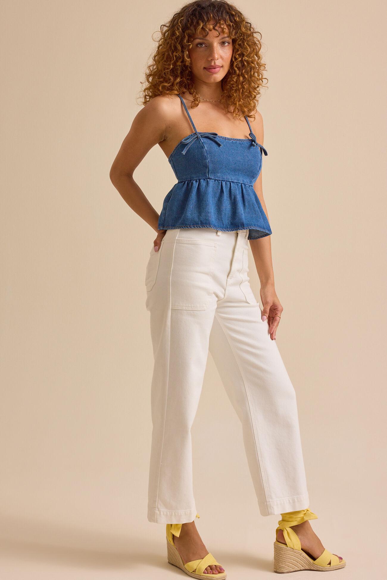 This tank top combines the charm of a babydoll silhouette. The bow straps add a touch of playful detail, making this a unique and stylish piece.