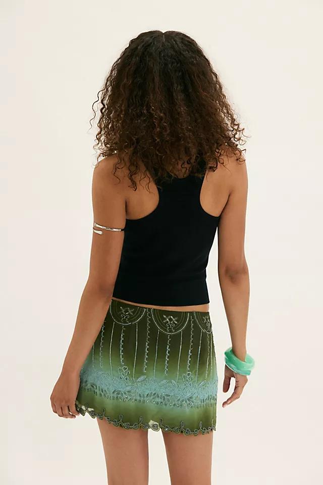 Boldly beaded and so statement-making, this stunning skirt features unique beading at the front with wrap paneling and silky lining for added dimension.