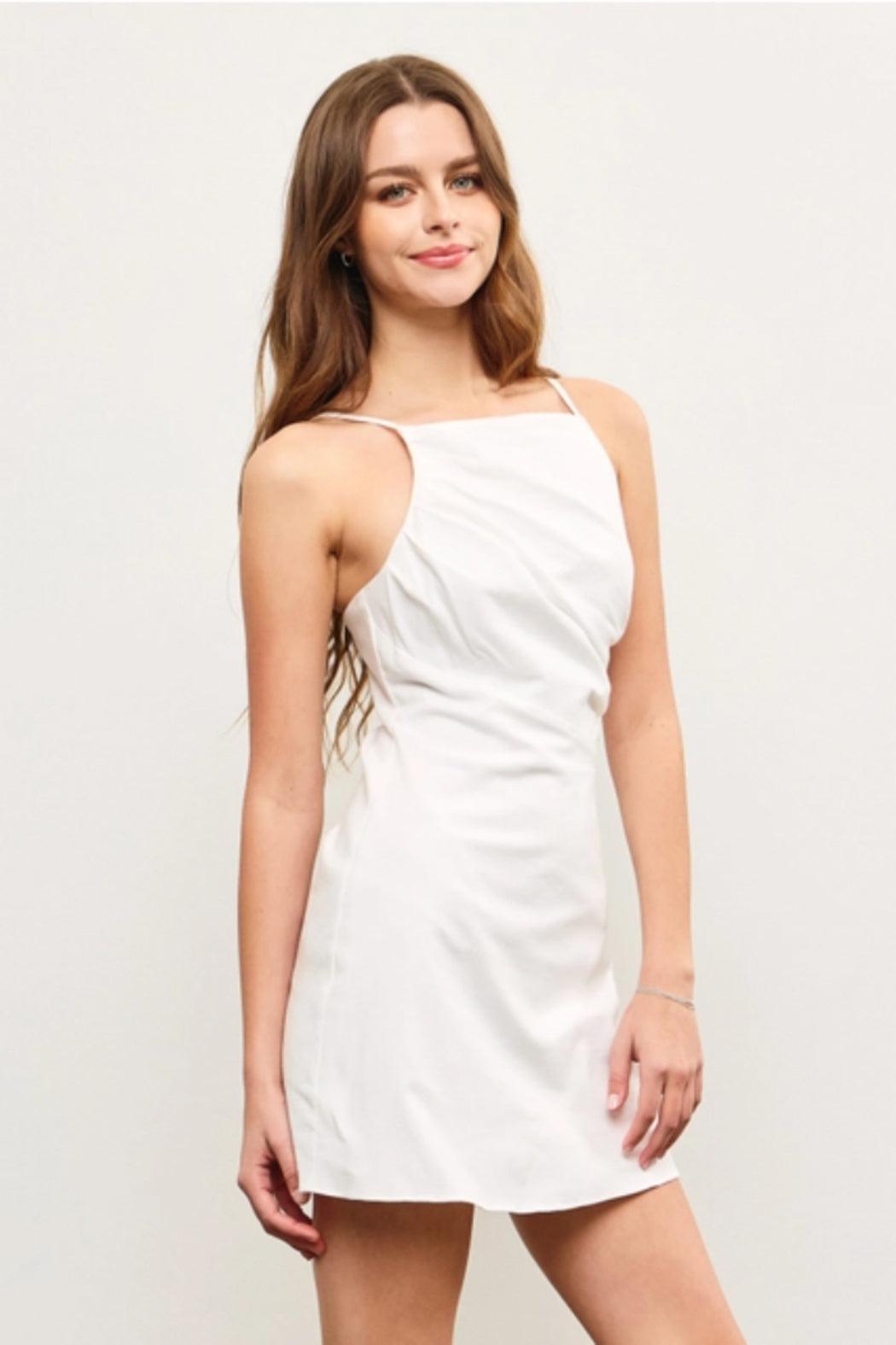 Effortlessly refined with a modern twist, the Laney Asymmetrical Dress is your go-to for sleek, minimalist styling. Featuring a flattering body-skimming silhouette and delicate shoulder straps, this piece is elevated by soft draping and subtle asymmetrical ruching along the bodice. Its clean neckline and above-the-knee hem offer just the right balance of elegance and edge, perfect for rooftop evenings, date nights, or dressing up with heels and a statement clutch.