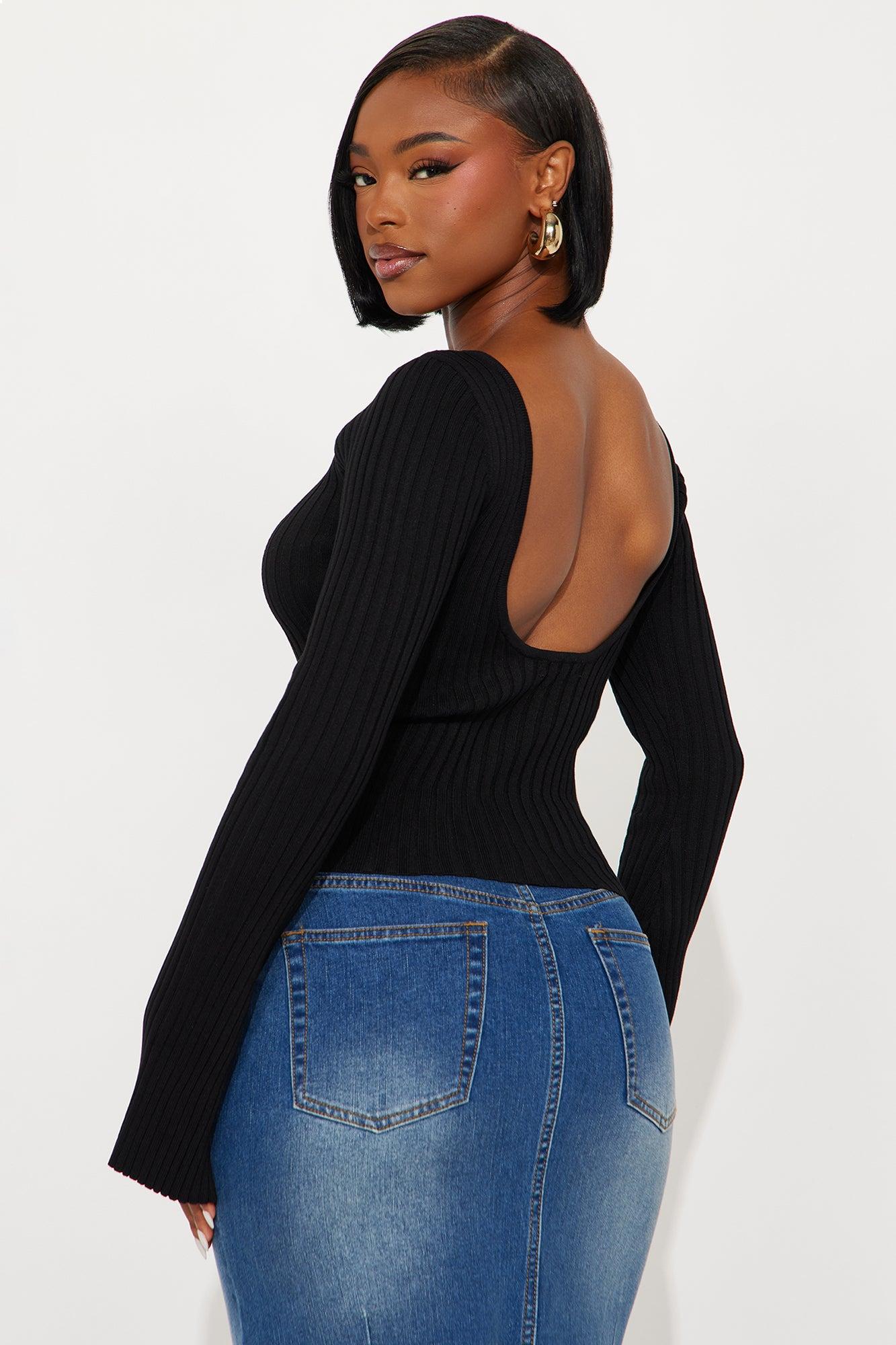 Available In Black. Pullover Sweater Washed Scoop Back 80% Viscose 20% Nylon Imported