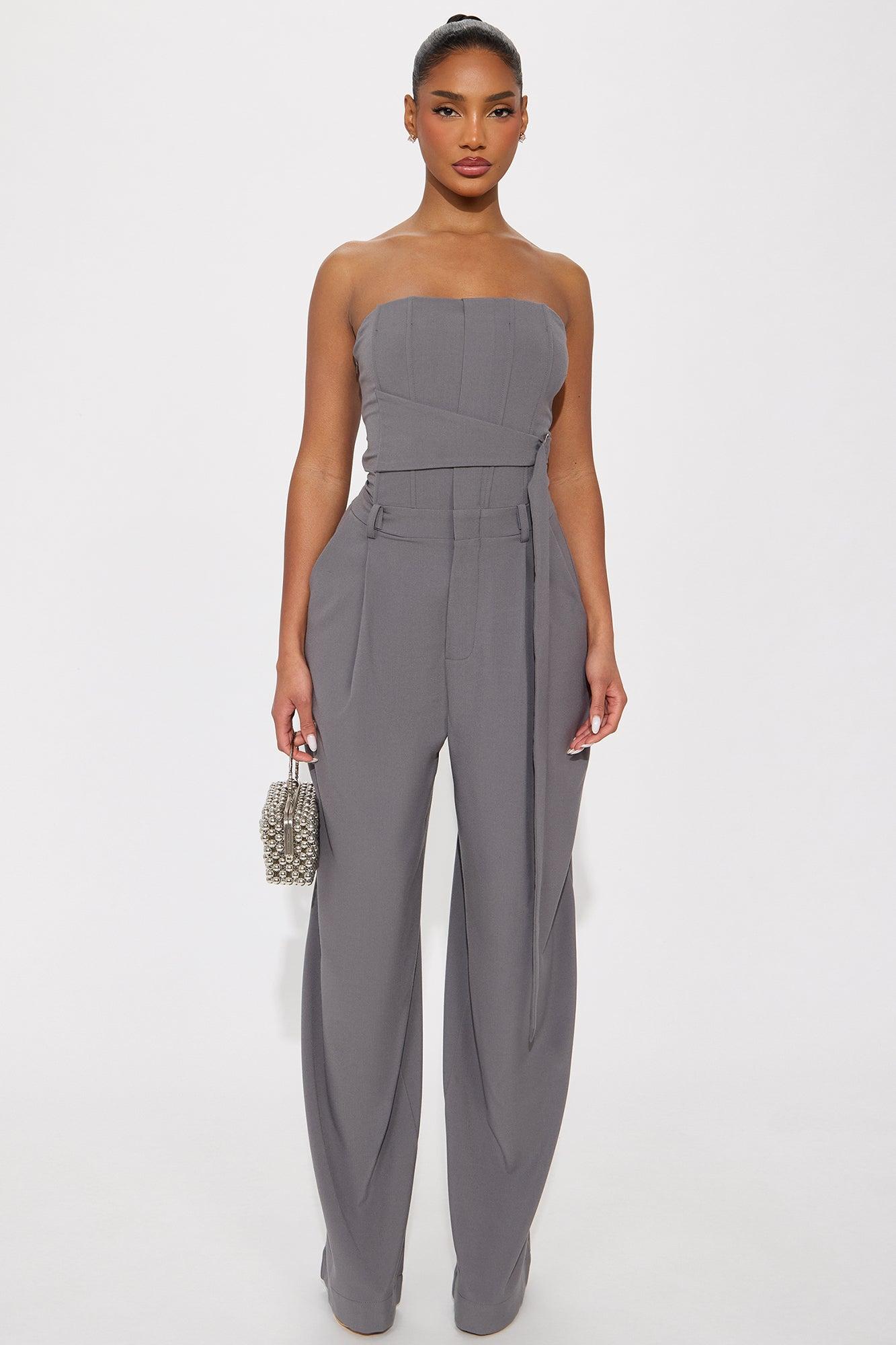 Late For Work Wide Leg Jumpsuit - Charcoal Female
