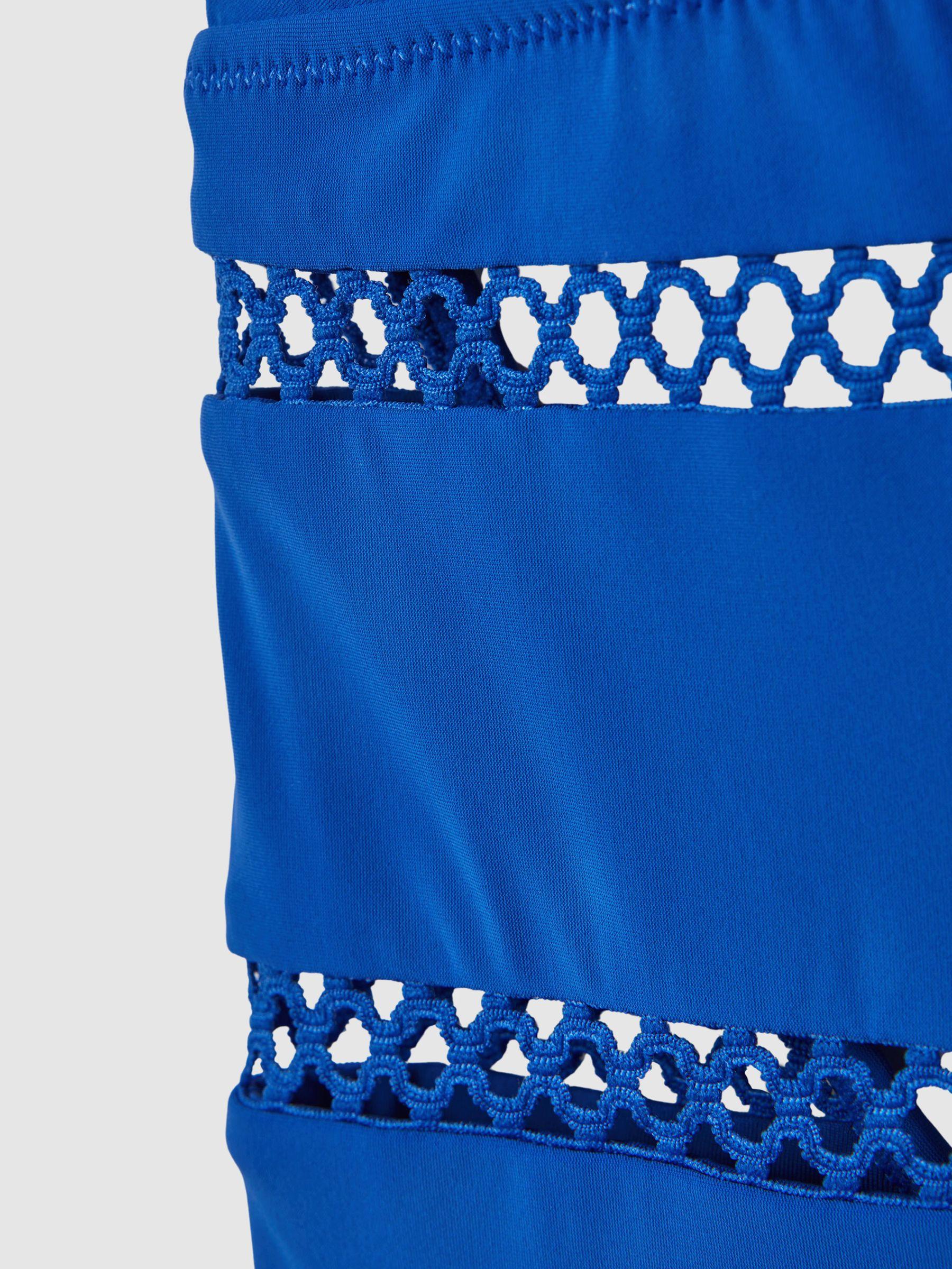 The Gia swimsuit is designed with removable padding and lattice detailing to the waist and bust. It fastens behind the neck and with a tie at the back. Lattice detailing Self-tie halterneck fastening Tie fastening to reverse Removable padding