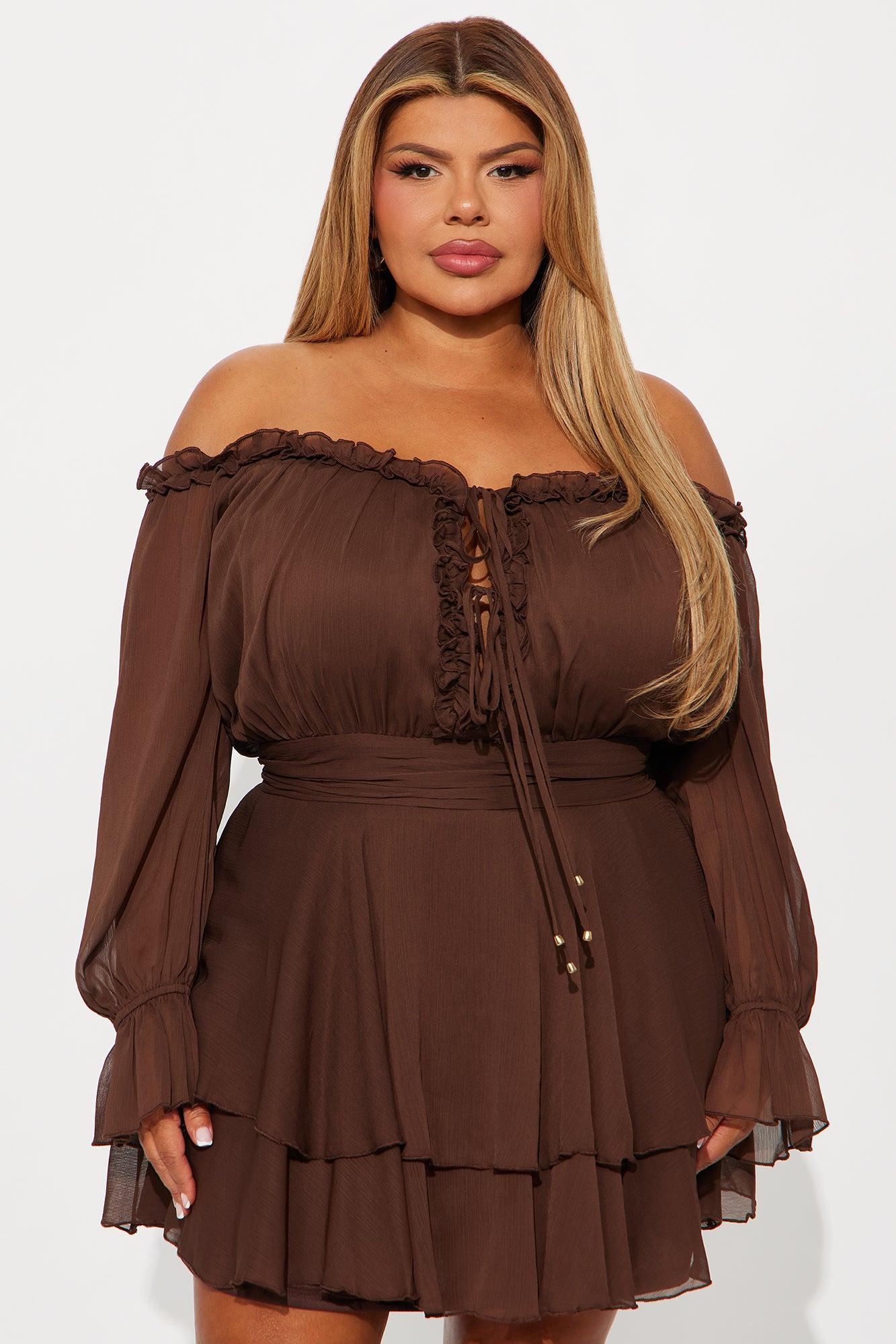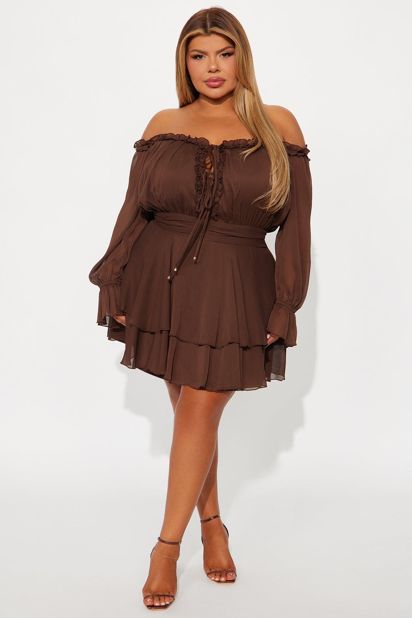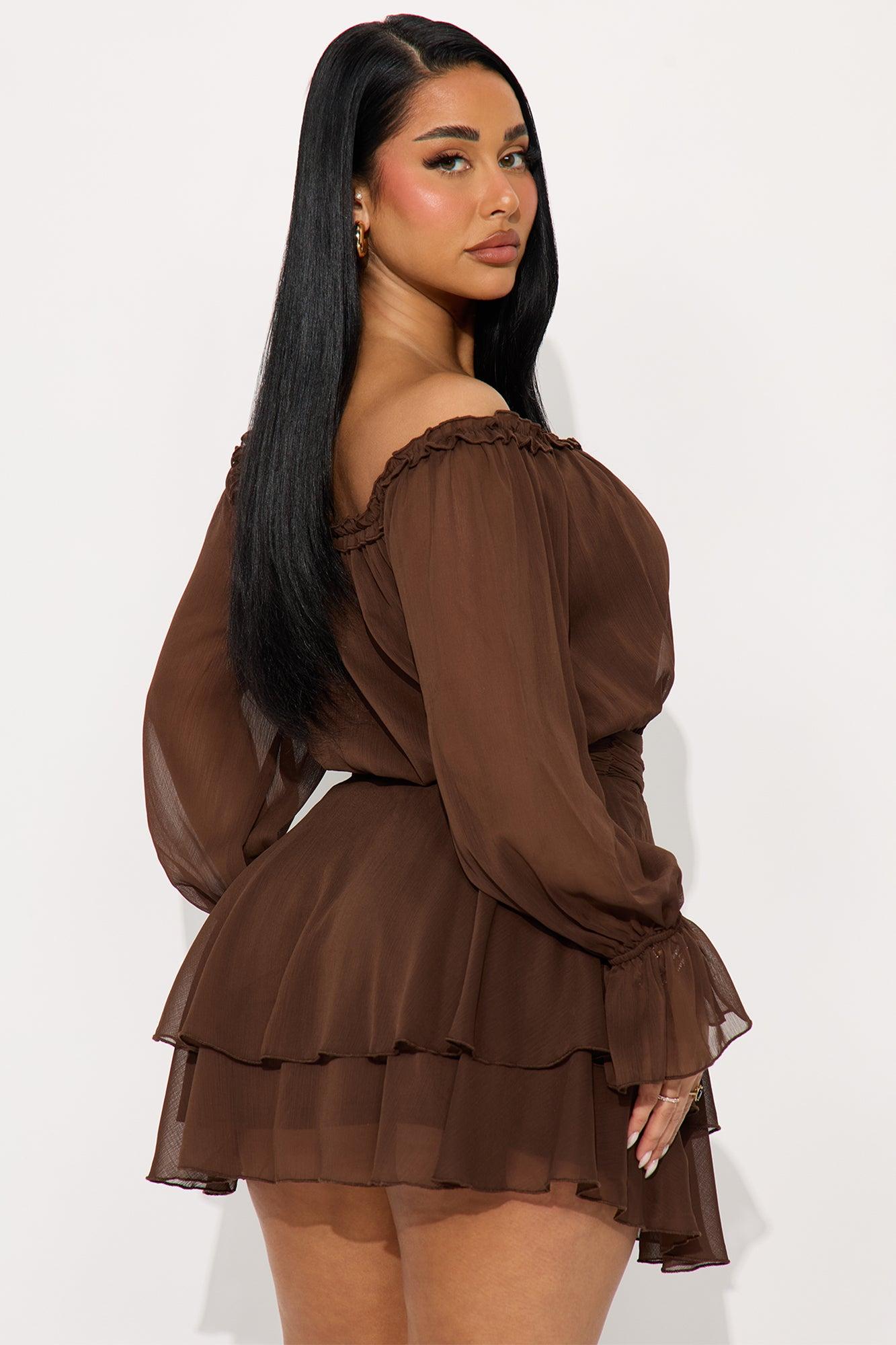 Laura Long Sleeve Chiffon Mini Dress - Chocolate Female