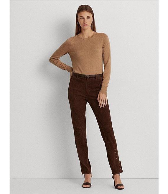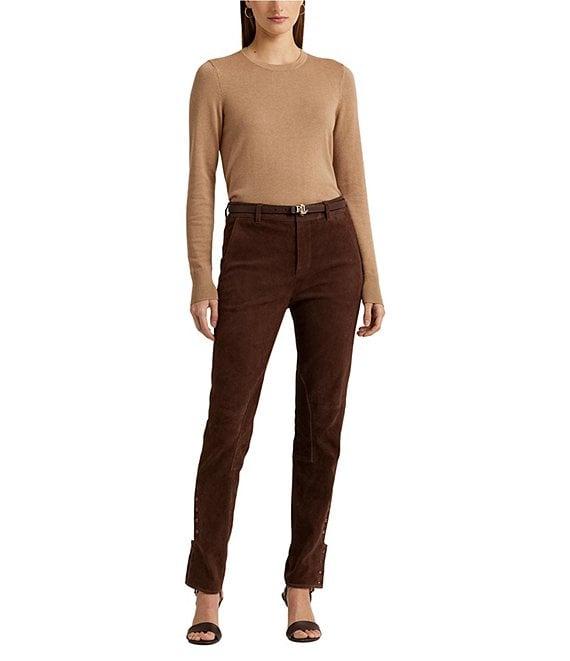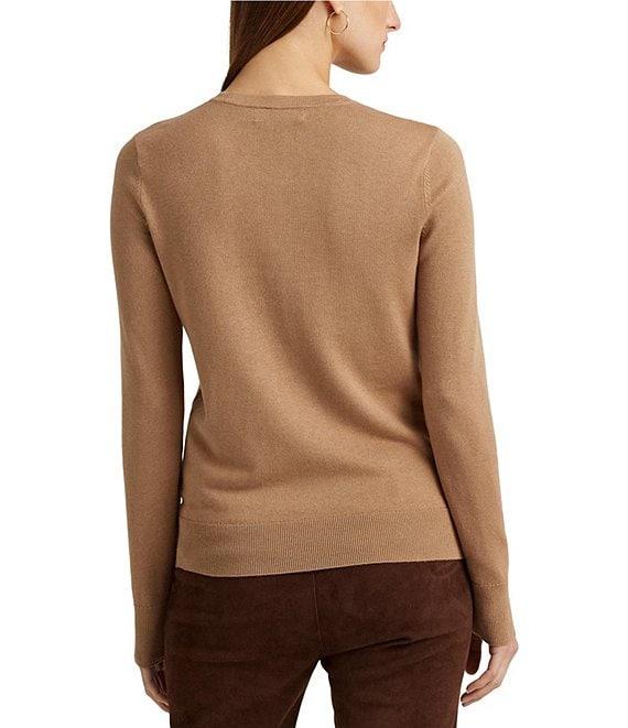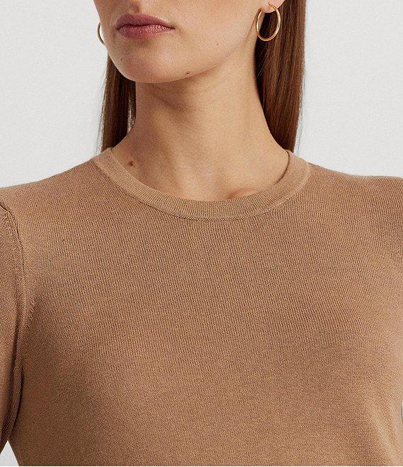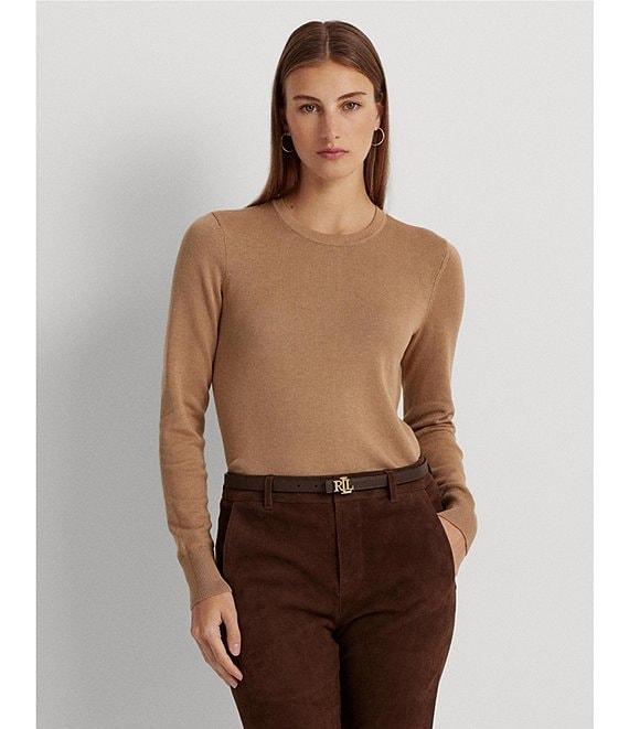 From Lauren Ralph Lauren, this sweater features: Cotton blend fabrication Pullover silhouette Body skimming/slim fit Crew neckline Long sleeves with ribbed cuffs Ribbed hemline Intended to hit at the hip Pull-on construction Size medium has a 24" body length and sleeve length Body length is taken from the high point of the shoulder Sleeve length changes 0.5" between sizes Cotton/modal Hand wash Imported.