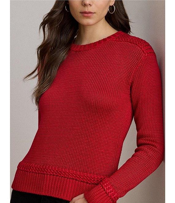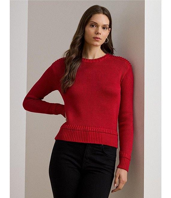 From Lauren Ralph Lauren Petite, this sweater features: Cotton-blend fabrication Ribbed crew neckline Long sleeves with ribbed cuffs Slightly dropped shoulders Rack stitching at the shoulders, cuffs and above the hem Relaxed fit, intended to hit at the hip Ribbed hem Pullover construction Approx. 19" body and 20.25" sleeve length, 0.5" between sizes Cotton/viscose Machine washable or dry clean Imported.