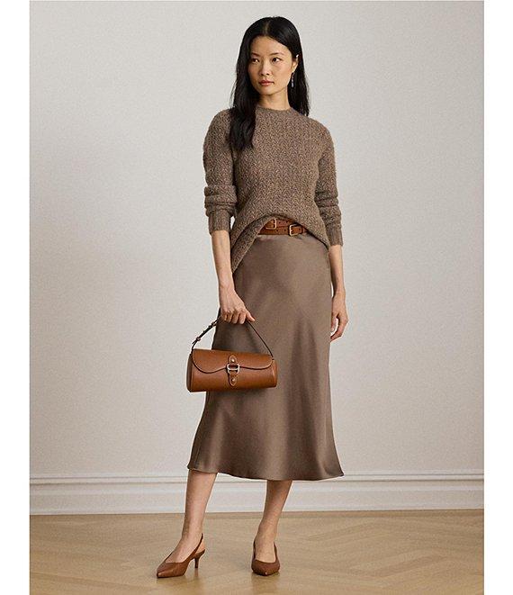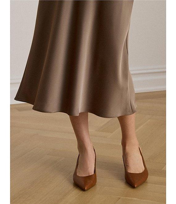 From Lauren Ralph Lauren, this skirt features: Silky satin charmeuse fabrication A-line silhouette Elasticized waist Midi length Pull on construction Approx. 32.25" length, 0.25" between sizes Polyester Hand was cold/line dry or dry clean Imported.