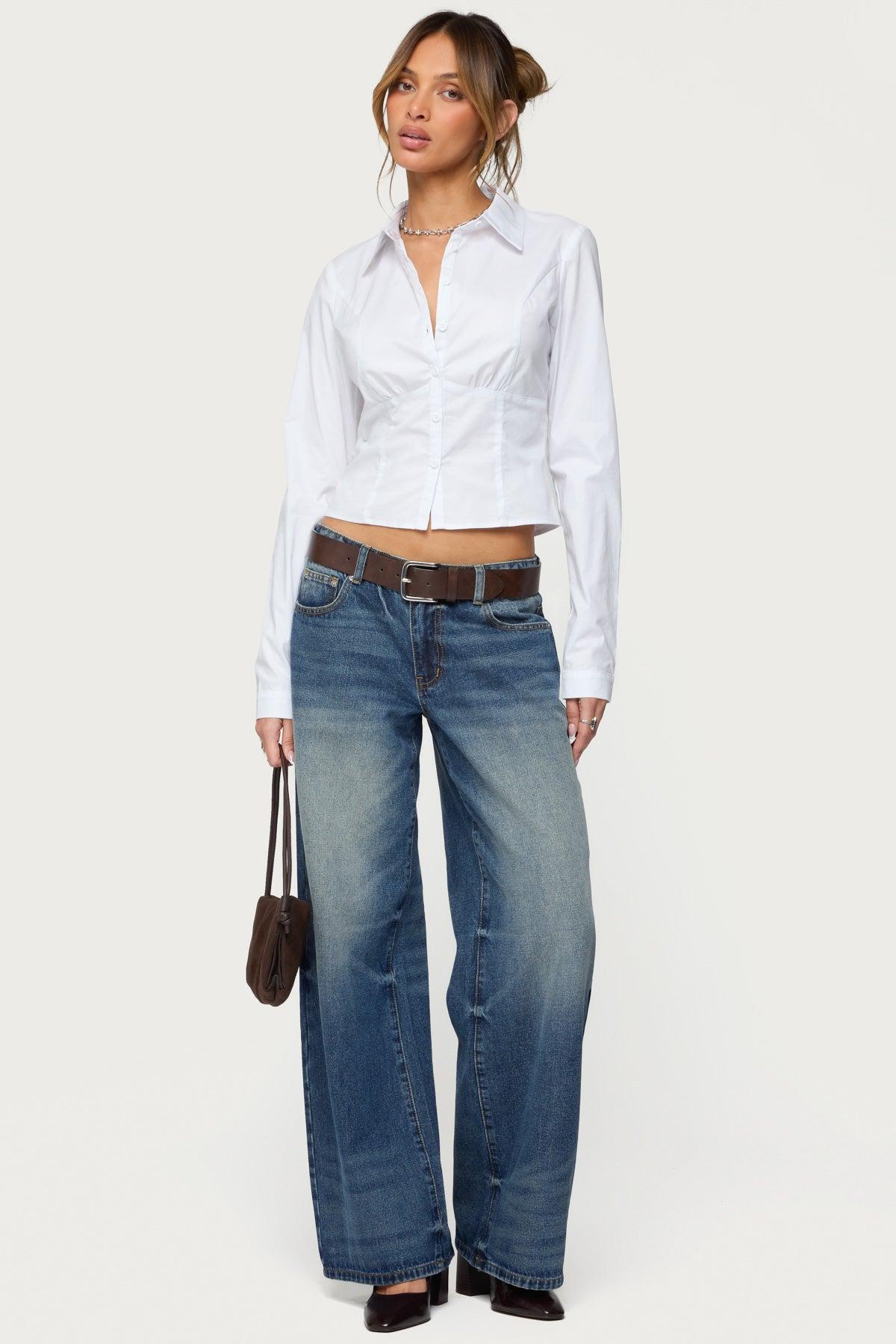 Button up shirt Long sleeves Tailored design Classic collar Underbust ruching Cotton, Spandex Model wears size S Model height is 5'9 Item care: Machine wash at maximum 30ºC, do not bleach, tumble dry low, iron at a maximum of 110ºC, do not dry clean