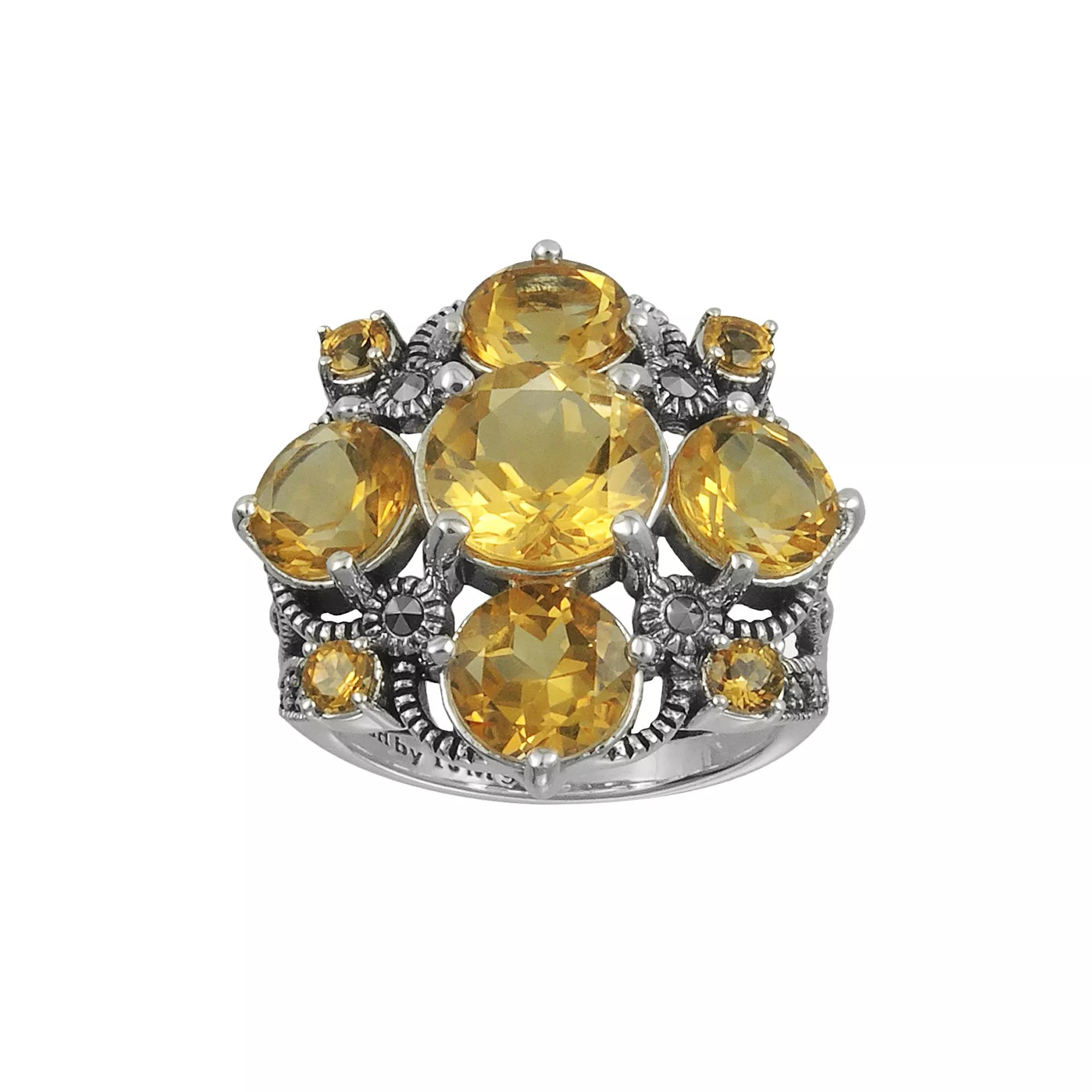Dare to dazzle with this gorgeous genuine citrine and maracasite stone ring.Ring Details: Ring width: 0.80 in. Metal: sterling silver Features: milgrain detailsStone Details: Stone type: genuine citrine, marcasite Cut: round Setting: prong Size: 6. Color: Orange. Gender: female. Age Group: adult.