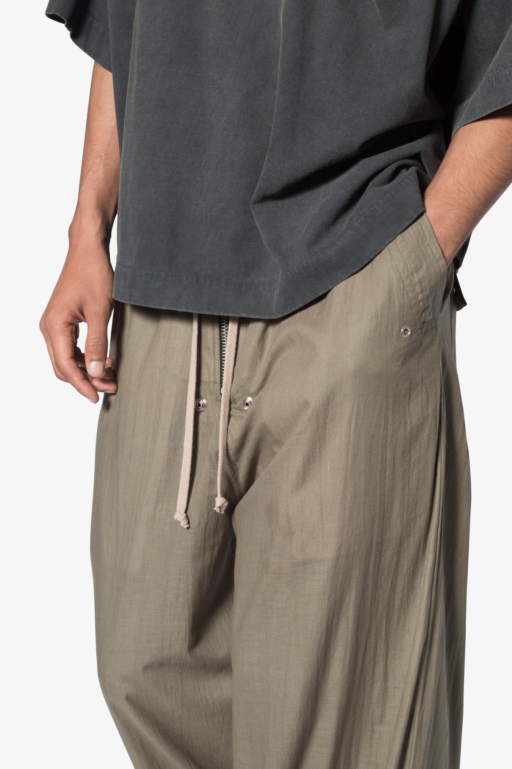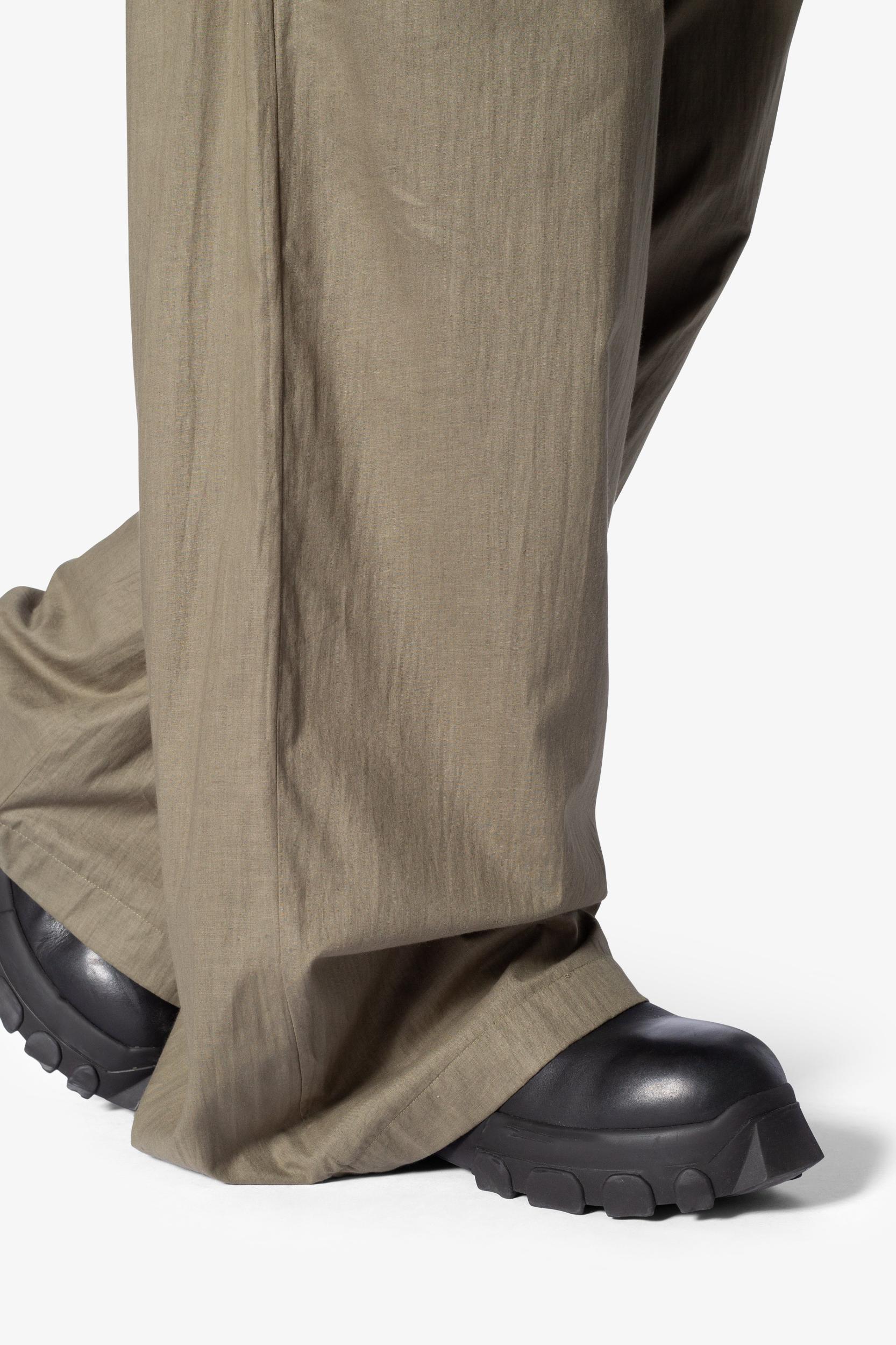 the Gauze Layered Rave Pants are designed with a new oversized rave fit, constructed from a cotton fabric shell and polyester lining with a rinse wash, and finished with a contrast drawcord. details ultra baggy fit throughout shell: 100% cotton lining: 100% Polyester extended inseam model is 6’1, 140 lbs and wears a si