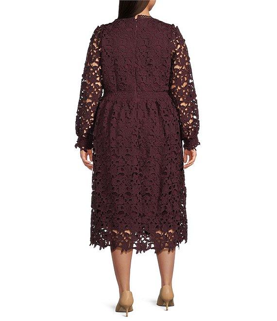 Layered With Love Plus Size Lace Crew Neck Long Sleeve Midi Dress