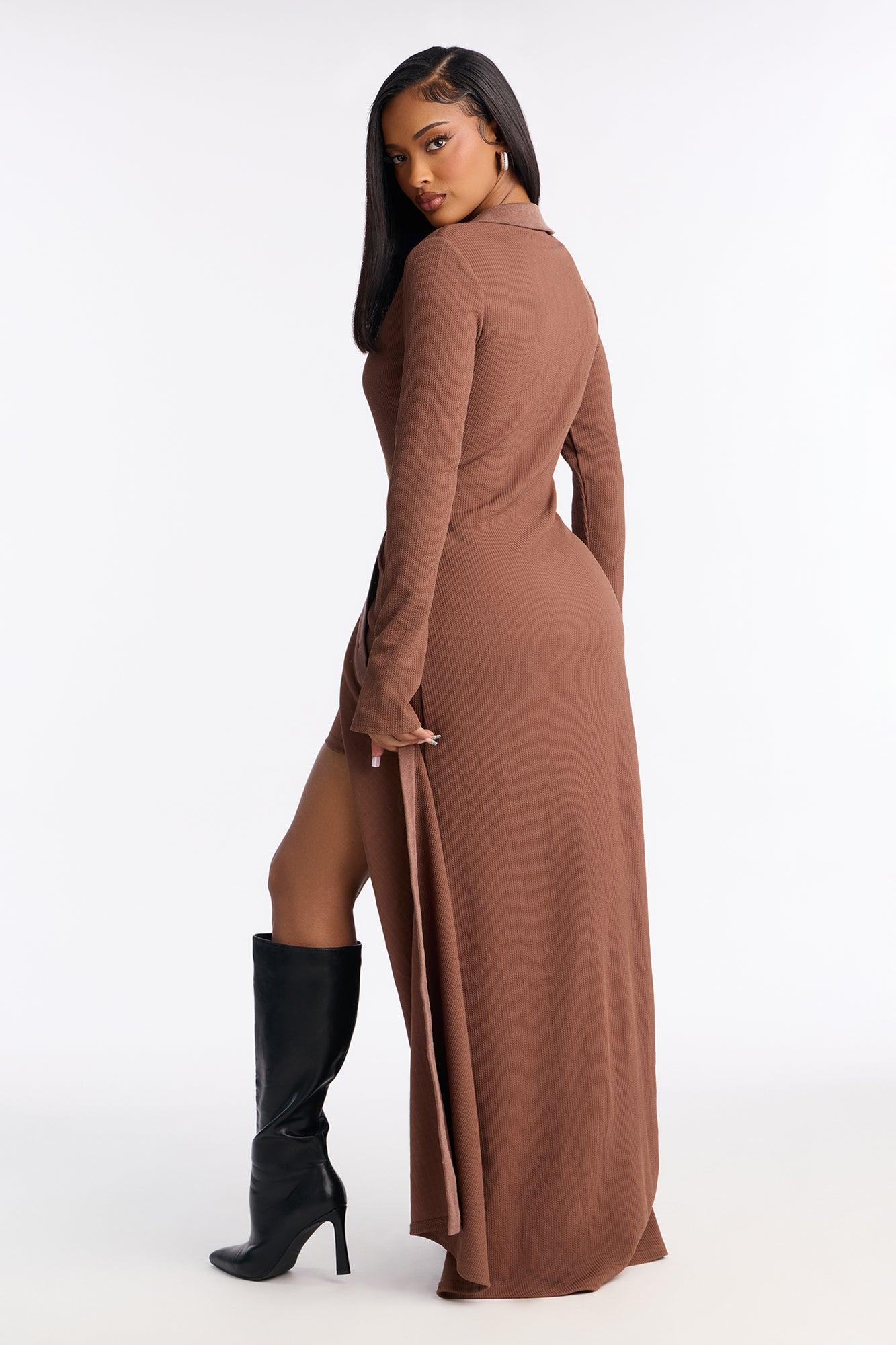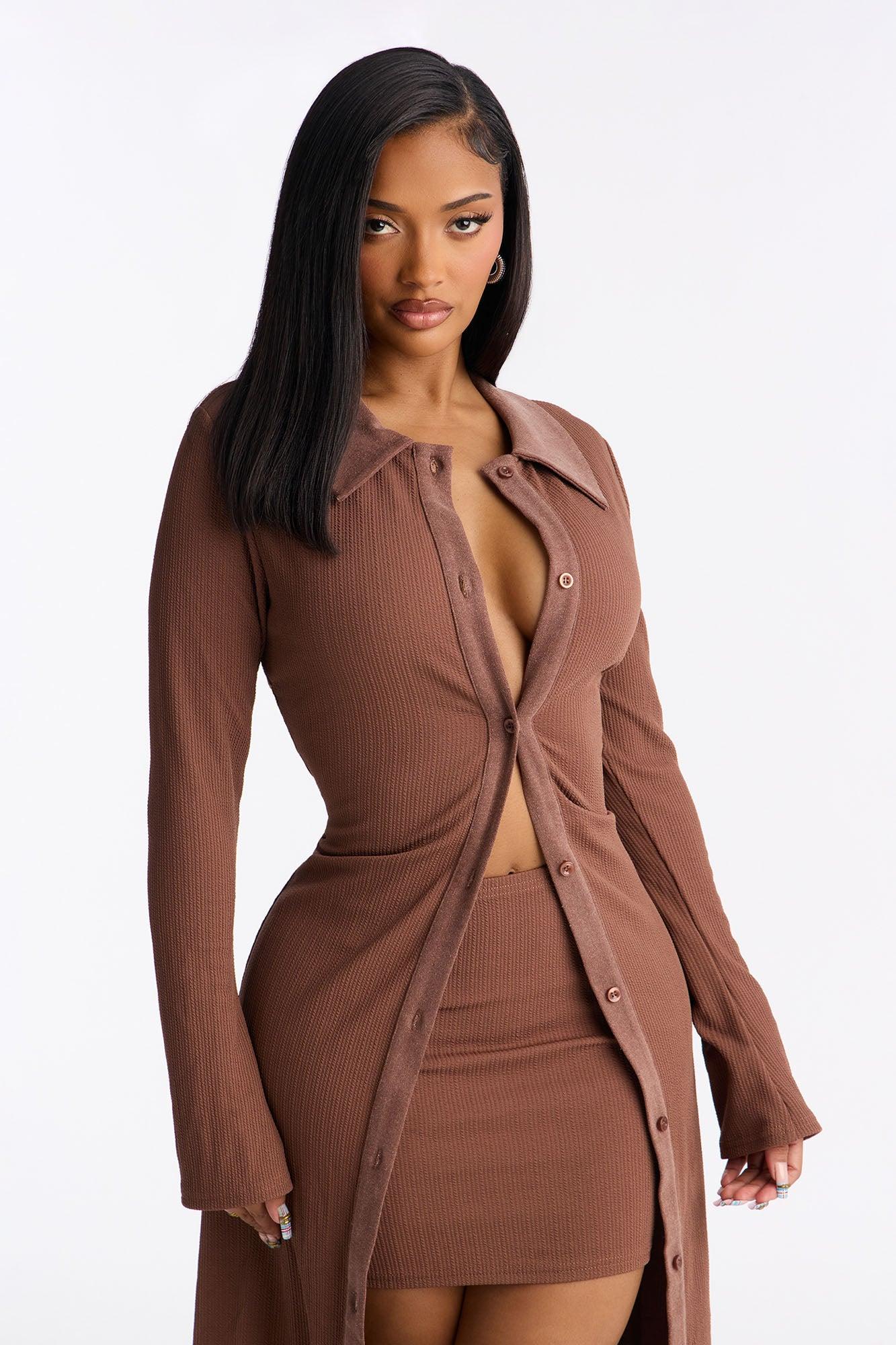 Layers And Legs Long Cardigan Mini Skirt Set - Brown Female