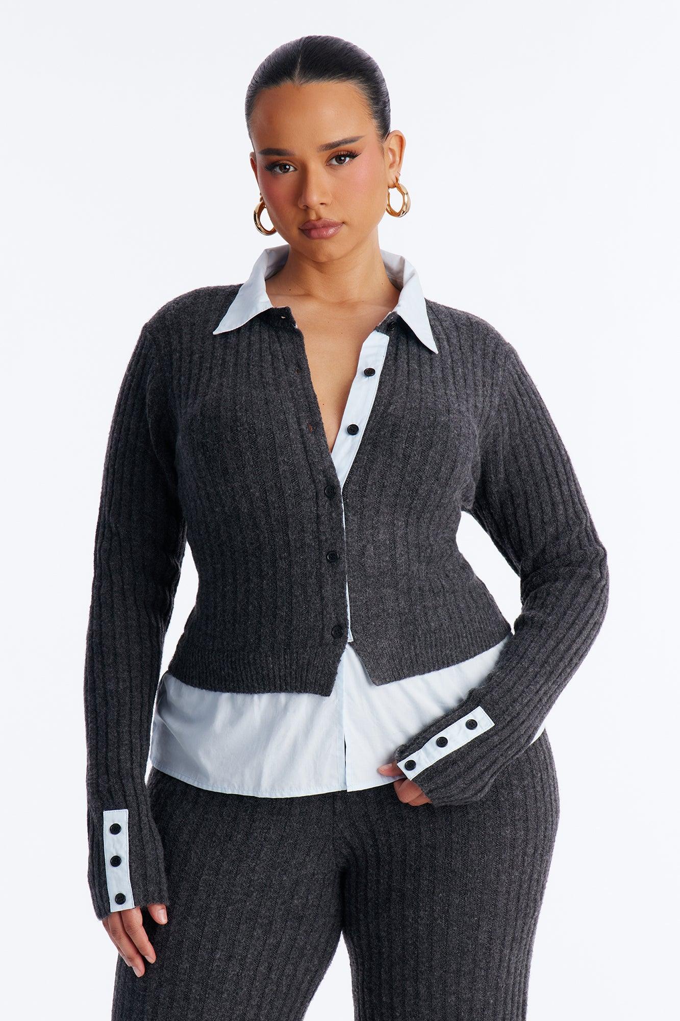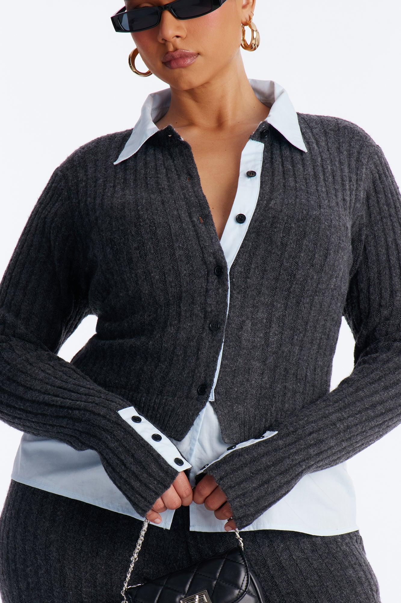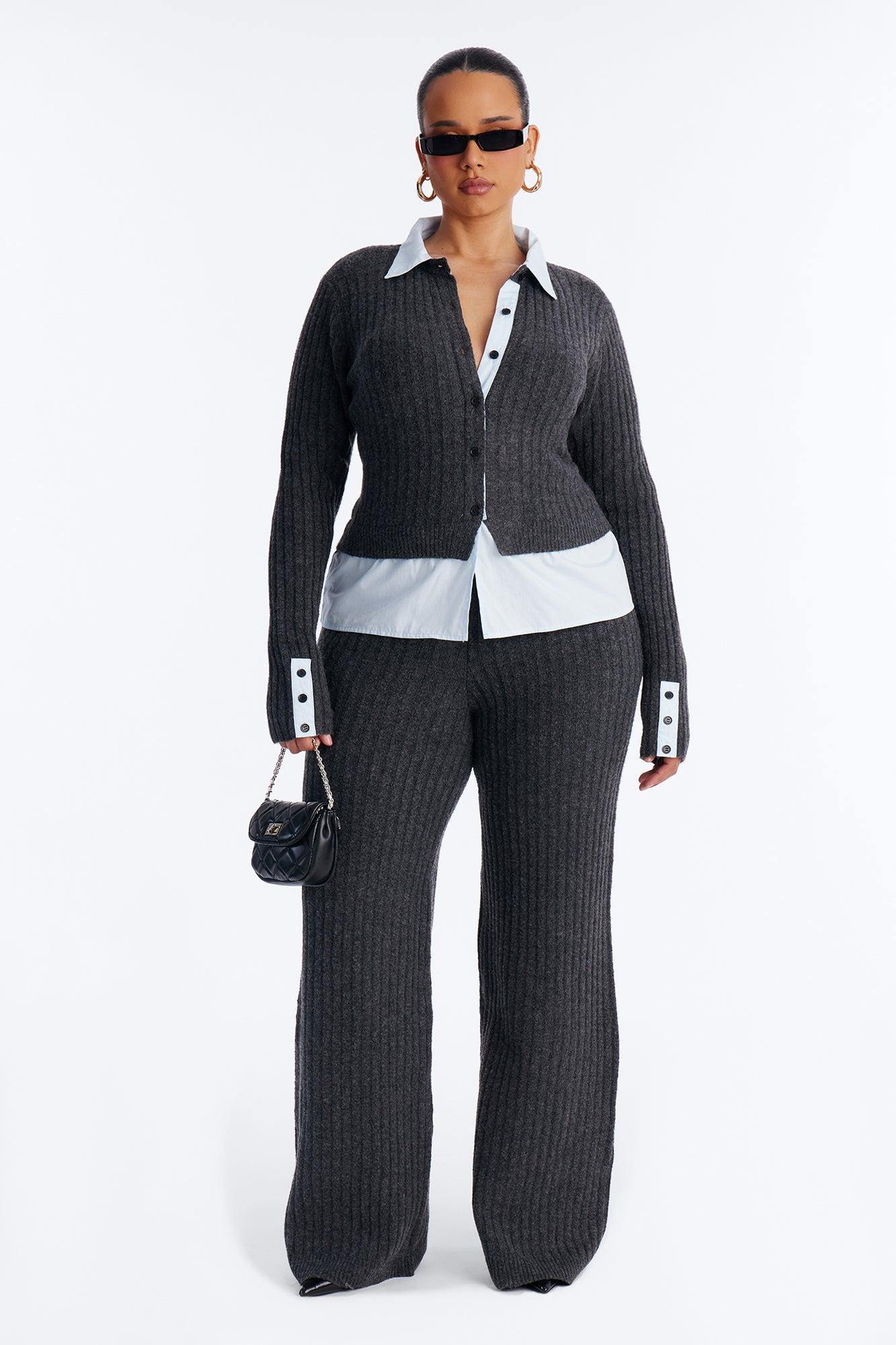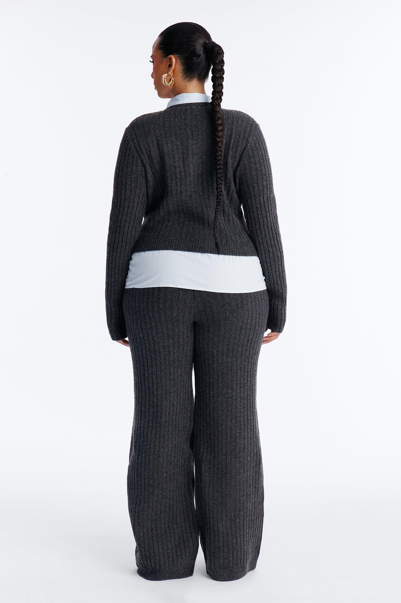 Lazy Monday Collar Sweater Wide Leg Pant Set - Charcoal Female