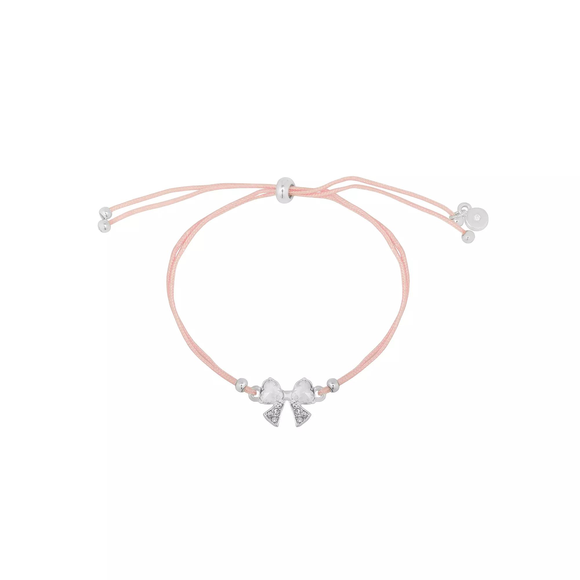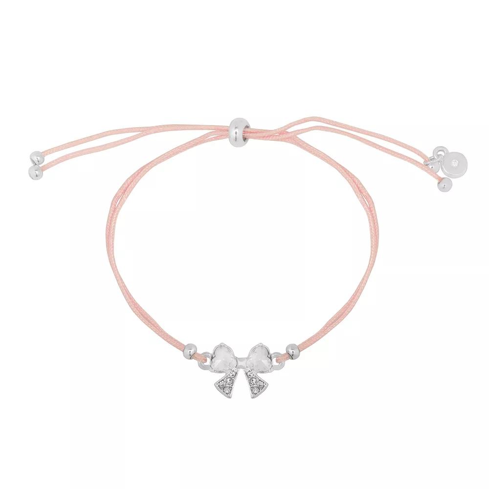 Add a touch of whimsy to your outfit with this charming bracelet from LC Lauren Conrad. Featuring adorable bow accents and a soft color palette, it's the perfect accessory for those days when you want to feel extra special—because who doesn't deserve a little sparkle? Click on this JEWELRY & WATCHES GUIDE to learn about fit, styles, materials and more! - https://www.kohls.com/feature/jewelry-guide.jsp. FEATURES: Adjustable sliding closure for a customizable fit, Charming bow design with sparkling accents. DETAILS: Length: 10 in., Closure: slipknot, Metal: brass, iron, zinc, Plating: silver tone, Finish: polished, Other materials: acrylic, cotton, glass, Imported. Not appropriate for children 14 years old and younger. Size: One Size. Color: Pink. Gender: female. Age Group: adult.