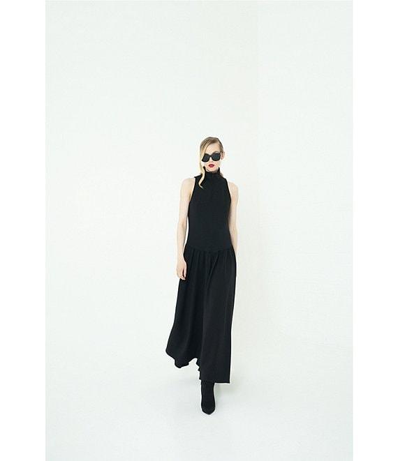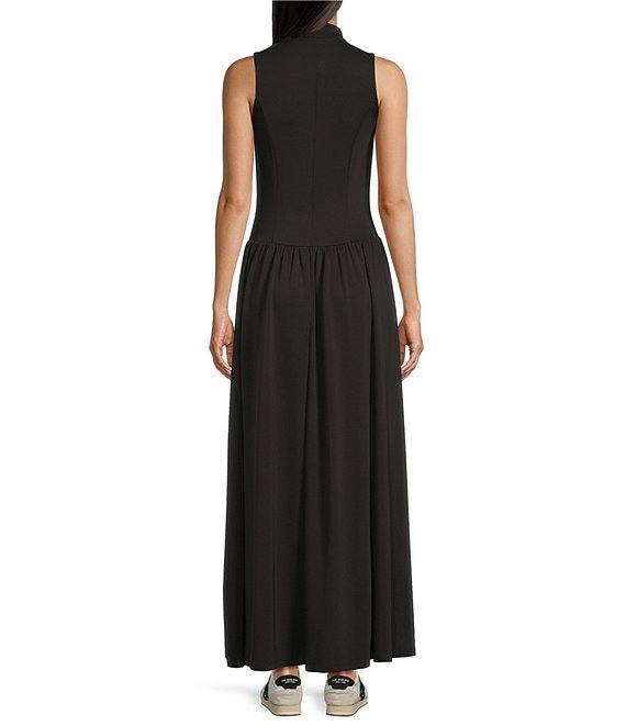 From Le' AL.X, this dress features: Modal knit fabrication Quarter zip mock neckline Pullover construction Sleeveless Fitted bodice A-line silhouette Flounce hemline Maxi length Approx. 54.25" HPS in length Rayon/modal/cotton/nylon/polyester Turn garment inside out prior to wash/machine wash on cold cycle/wash with similar colors and fabrications/promptly remove from wash/tumble dry on low/use cool steam iron if needed or professional dry cleaning Imported. Dillard's Exclusive