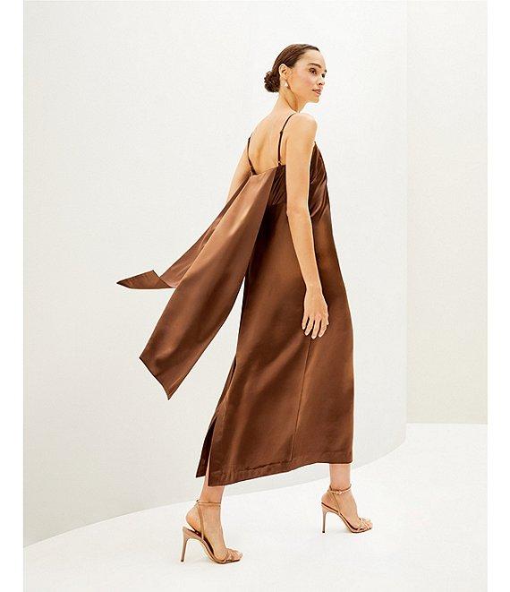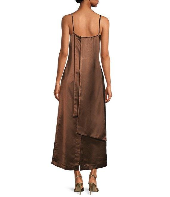 From Le' AL.X, this dress features: Satin Fabrication Square Neckline Adjustable Spaghetti Straps Pullover Construction Column Shift Silhouette Modern Fit Straight Hemline Maxi Length Approx. 48.25" HPS in length Polyester Professional Dry Cleaning Only Imported. Dillard's Exclusive