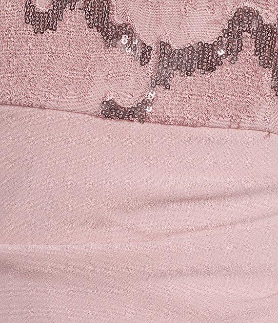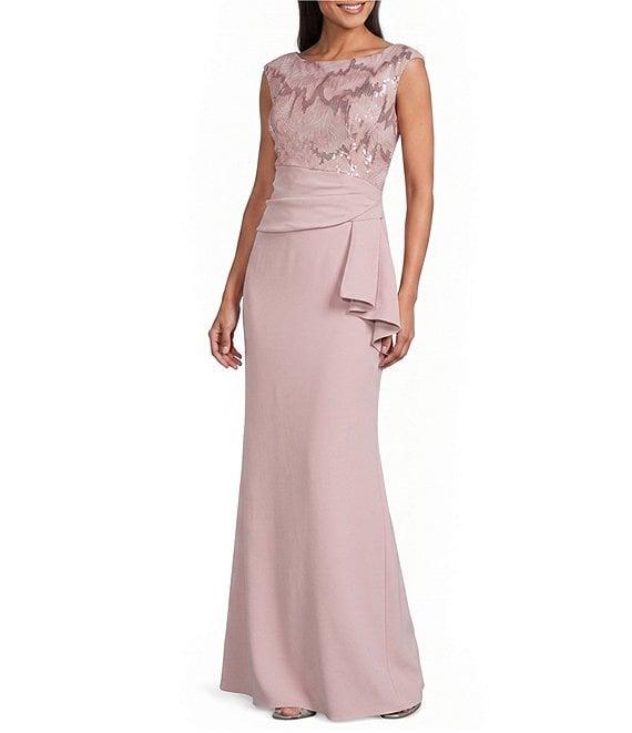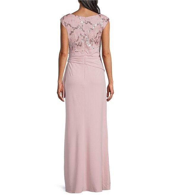 From Le Bos, this dress features:Sequin crepe fabricationBoat necklineCap sleevesFit and flare silhouettePartially linedSequin bodiceZip back closureApprox. 60" in length from high point shoulderPolyesterHand washImported.
