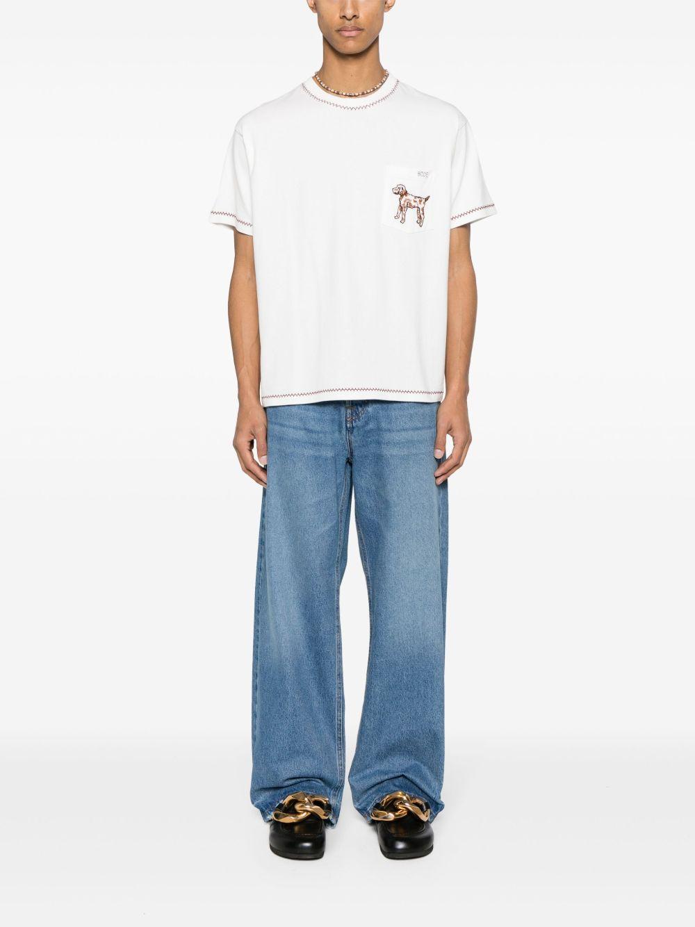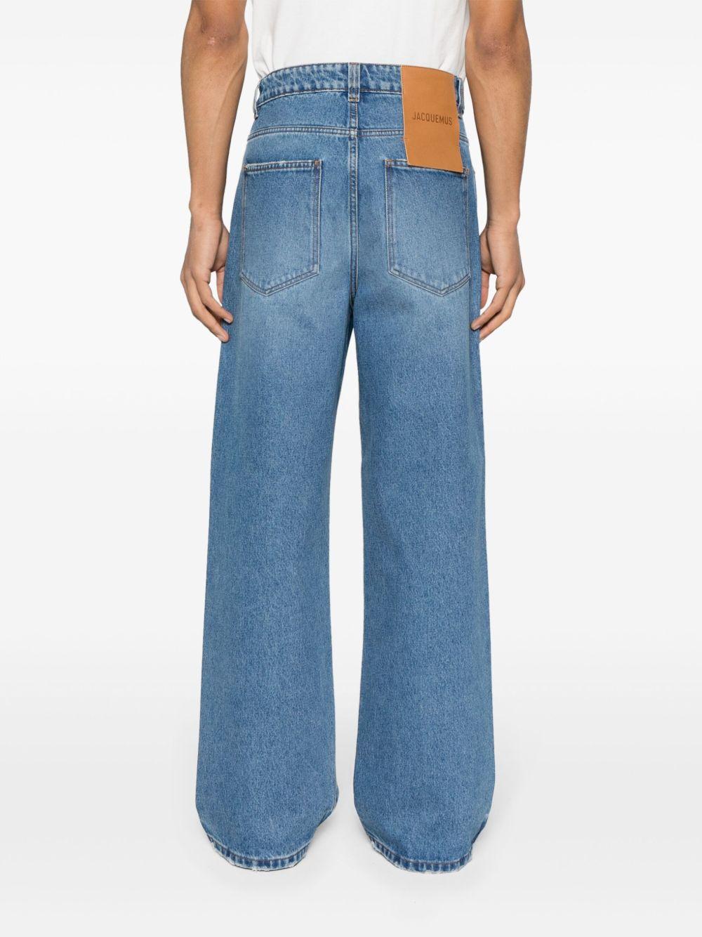 Jacquemus Le de Nîmes wide-leg jeans | Blue | light blue | cotton blend | denim | stonewashed | whiskering effect at the thighs | mid-rise | button fly fastening | logo-embossed buttons | belt loops | classic five pockets | logo patch to the rear | wide leg | Regenerative Cotton/Cotton | Wide-Leg Jeans | Denim | Clothing | Men