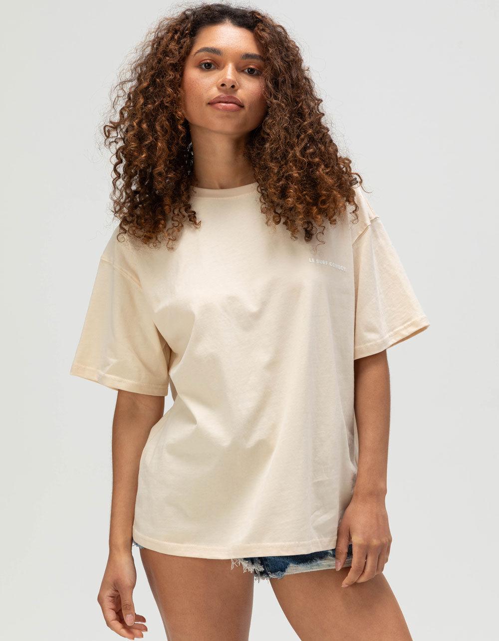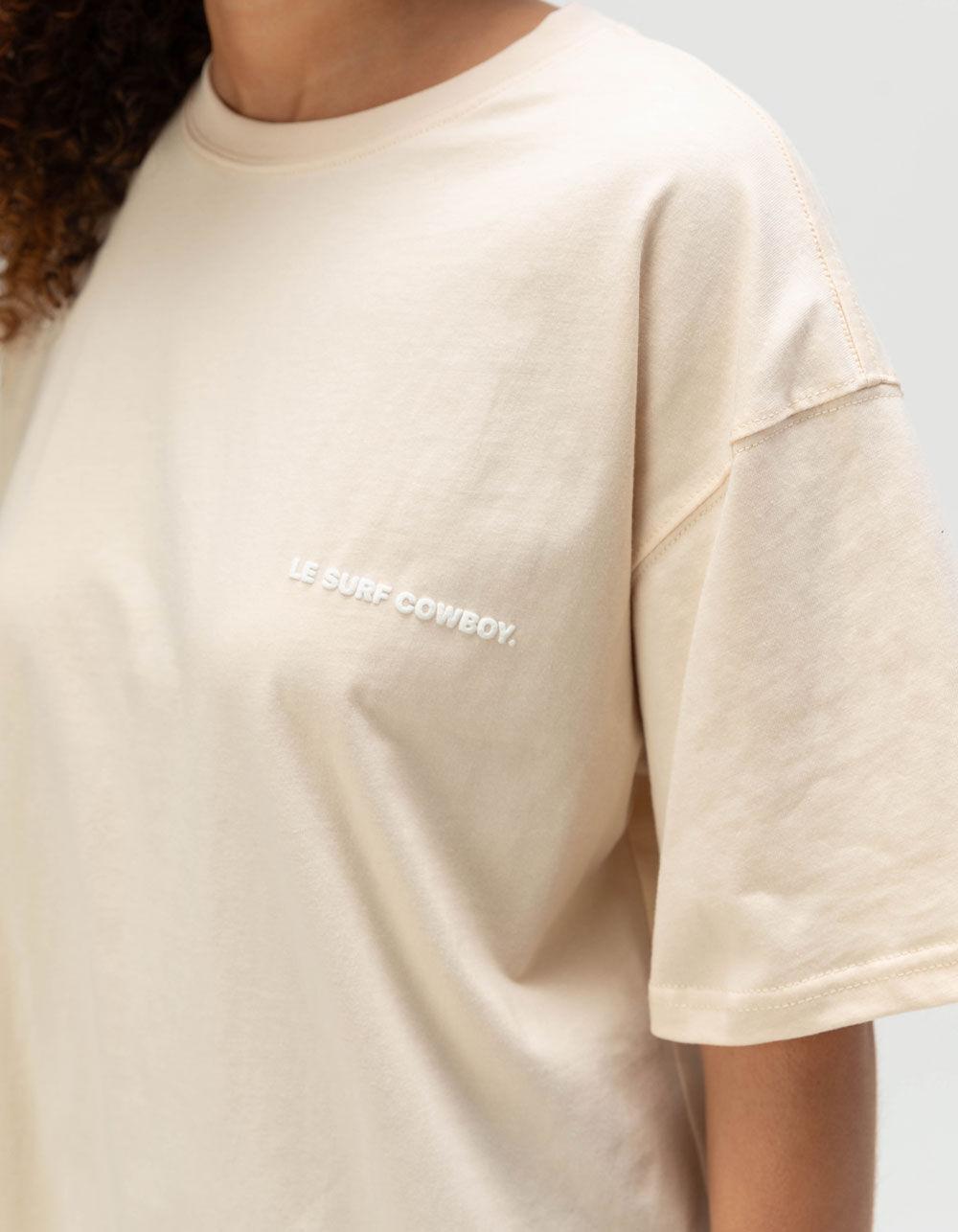 OFF WHITE. Le Surf Cowboy Puff Boyfriend Tee. The Le Surf Cowboy Puff Women’s Boyfriend Tee brings effortless edge to your everyday look, featuring “Le Surf Cowboy” in raised puff ink at the left chest and a bold, oversized version across the back. Designed with an oversized fit, short sleeves, and a classic crew neck, it’s the perfect mix of cool and comfy with a western twist. 100% Cotton. Machine wash. Imported.