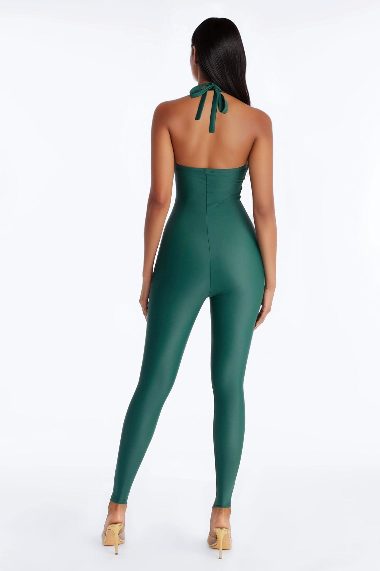 Available In Black, Burgundy And Hunter. Jumpsuit Back Neck Tie Detail Toe Strap Detail Skinny Leg Inseam = 29" Slight Stretch 85% Nylon 15% Spandex Imported California Proposition 65WARNING: Cancer and Reproductive Harm - www.P65Warnings.ca.gov.