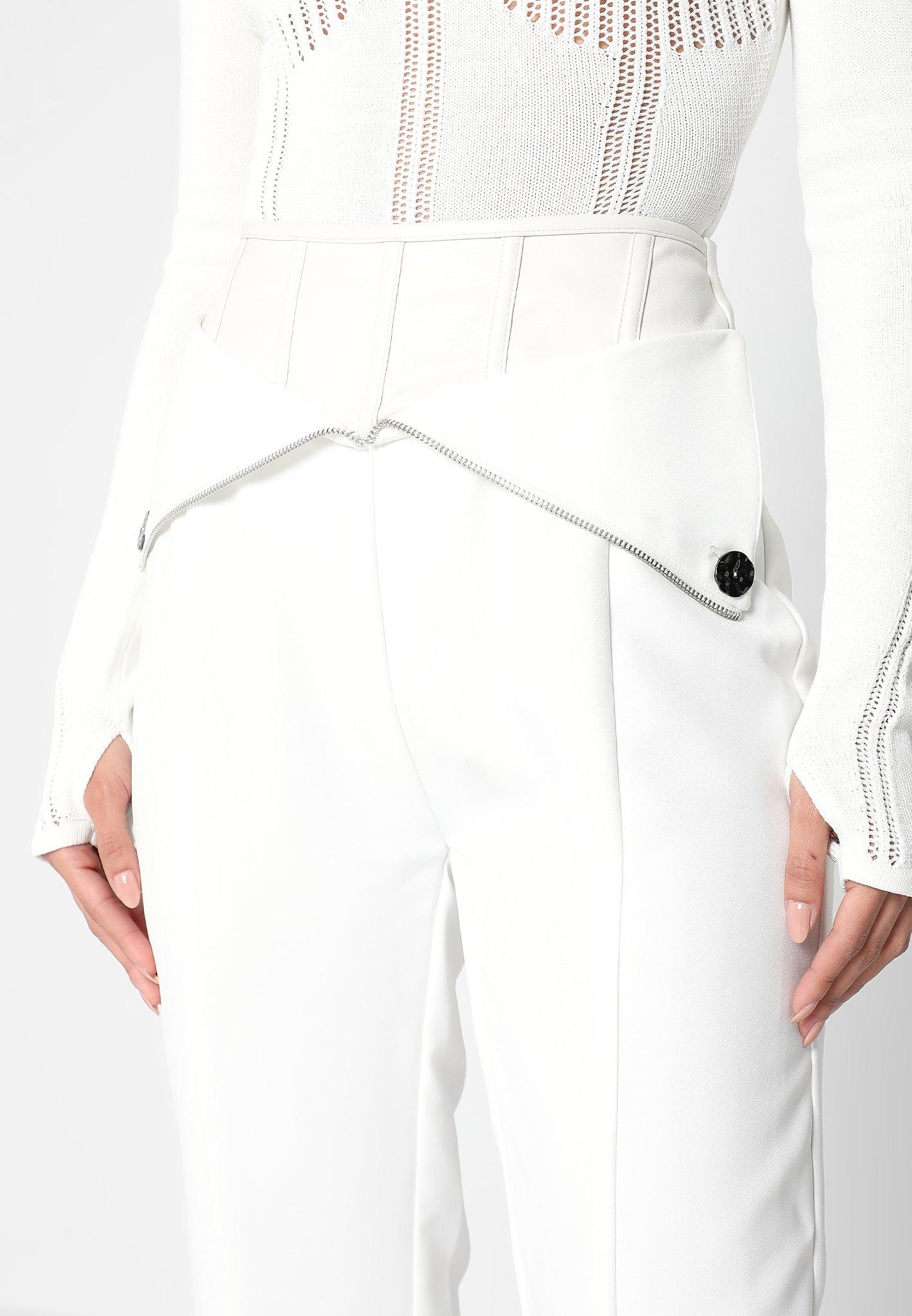 Leather Corset Zip Trousers - White Female