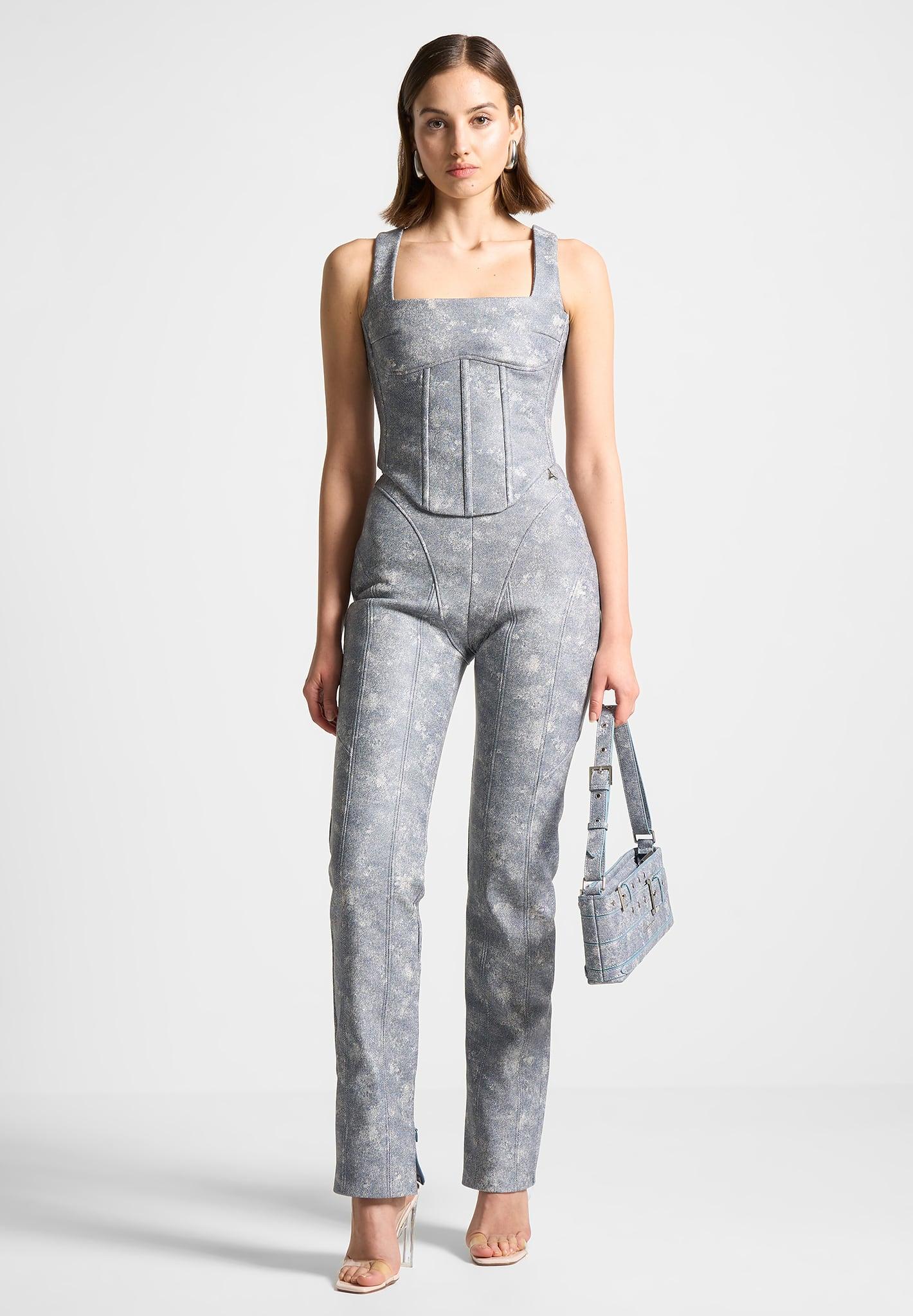Let your style shine in this Denim Effect Corset Top. Crafted with a structured design and a flattering fit, it’s designed to accentuate your silhouette and make an on-trend fashion statement. Corset Top Silhouette Internal Boning for Structure Dipped Hem Underbust Seam Detail Figure Flattering Silver Manière De Voir Eiffel Zip 80% PVC, 20% Polyester / 95% Polyester, 5% ElastaneAlways check the care label for wash instructions.