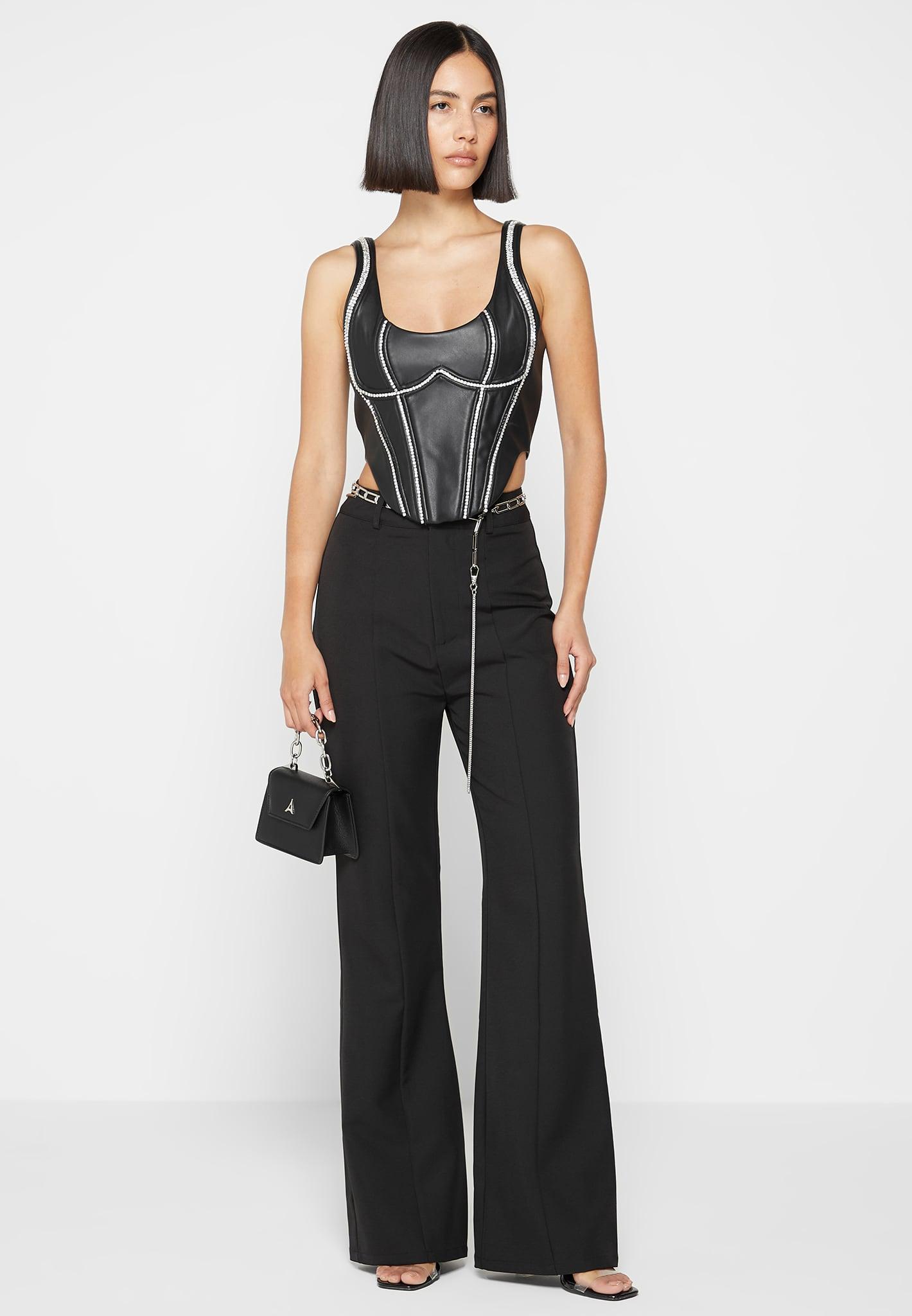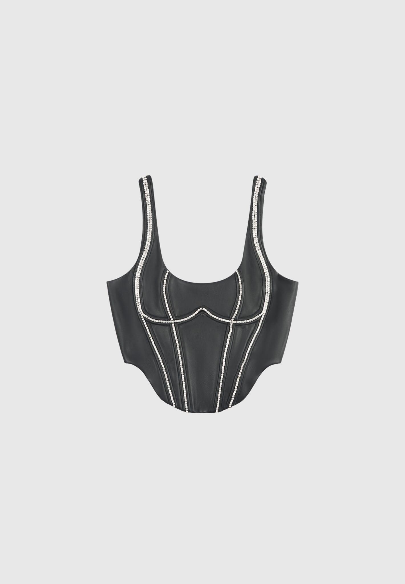 This Vegan Leather Embellished Corset Top offers a luxurious and fashionable look with its chic, embellished detailing. Enjoy a sophisticated and stylish look that is sure to stand out. Corset Top Silhouette Soft Vegan Leather Fabric Embellished Detailing Dipped Hem Contour Detailing Hook & Eye Fastening Silver Manière De Voir Eiffel Zip 55% Polyester, 45% PU / 97% Polyester, 3% ElastaneAlways check the care label for wash instructions.