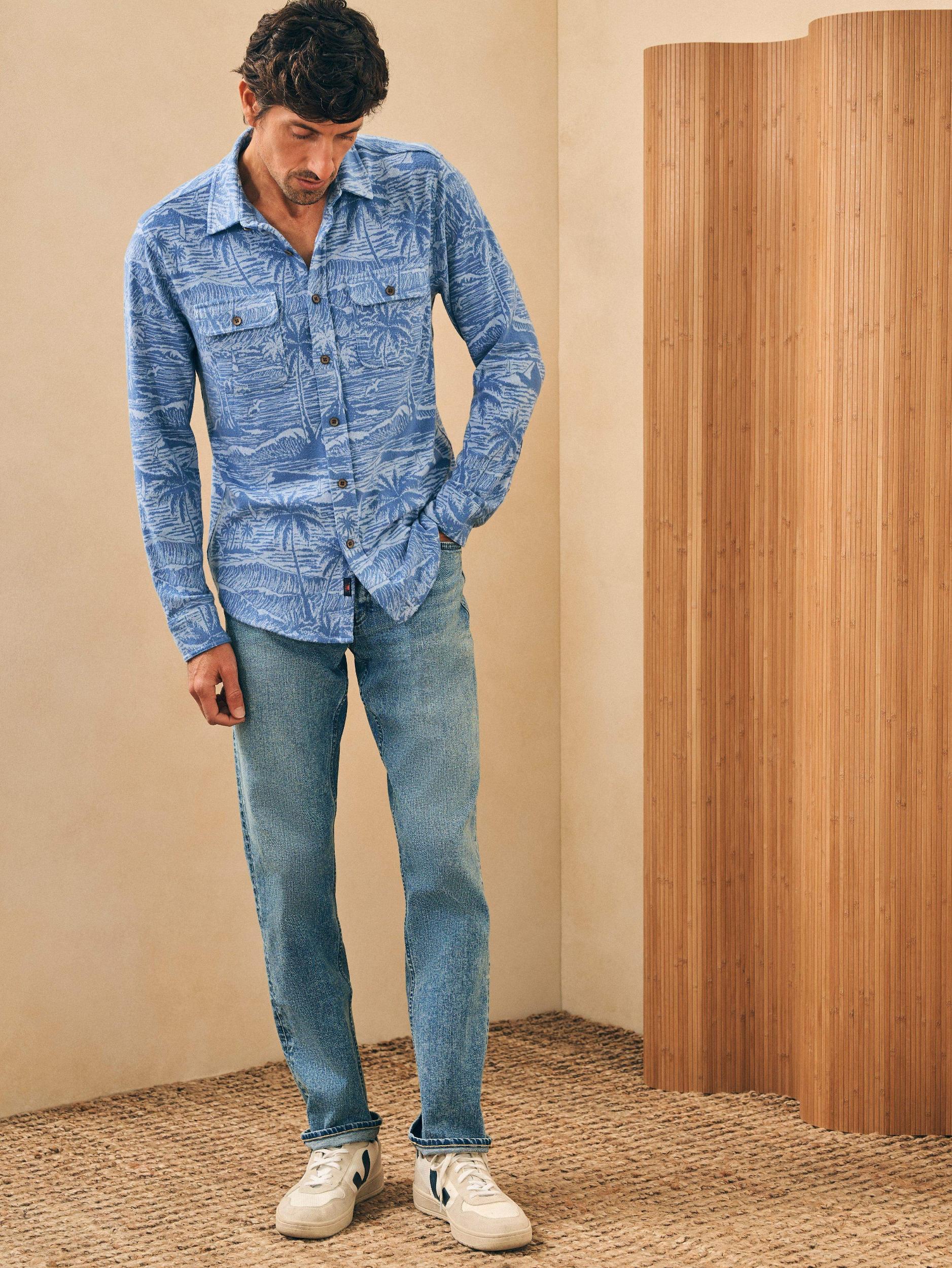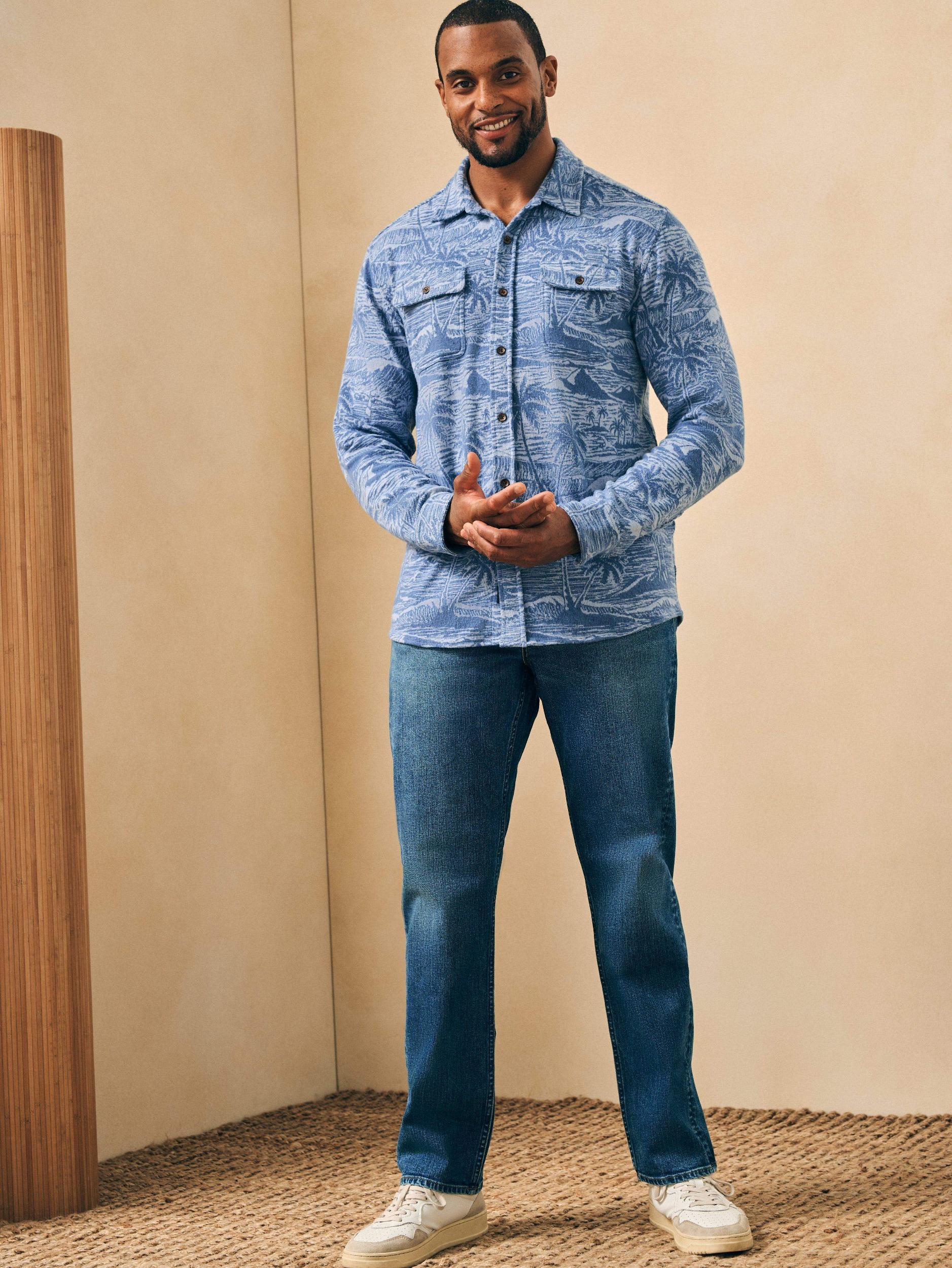 It's all in the name. Our #1 bestselling shirt is the season's best layering piece and the closest-to-perfect-thing we've ever made. The unique fabric is crafted from an incredibly soft knit with four-way stretch, then brushed for a super cozy, sweater-like texture. It's the most comfortable and versatile flannel you’ll ever wear. Fit: Relaxed through the chest with a slight taper at the waist. Relaxed, tapered sleeves. Detail: Spread collar. Button front and cuff. Two chest buttoned patch pockets. Shirttail hem. Material: 65% REPREVE® Recycled Polyester, 30% LENZING™ ECOVERO™ Viscose, 5% Elastane; Coconut Buttons Model: Juan is 6'1 wearing size Medium, Akeem is 6'4 wearing size XL Care: Turn inside out. Machine wash cold with like colors. Gentle cycle. Do not bleach. Tumble dry low. Remove promptly. Cool iron when needed. MXH2308-AAR
