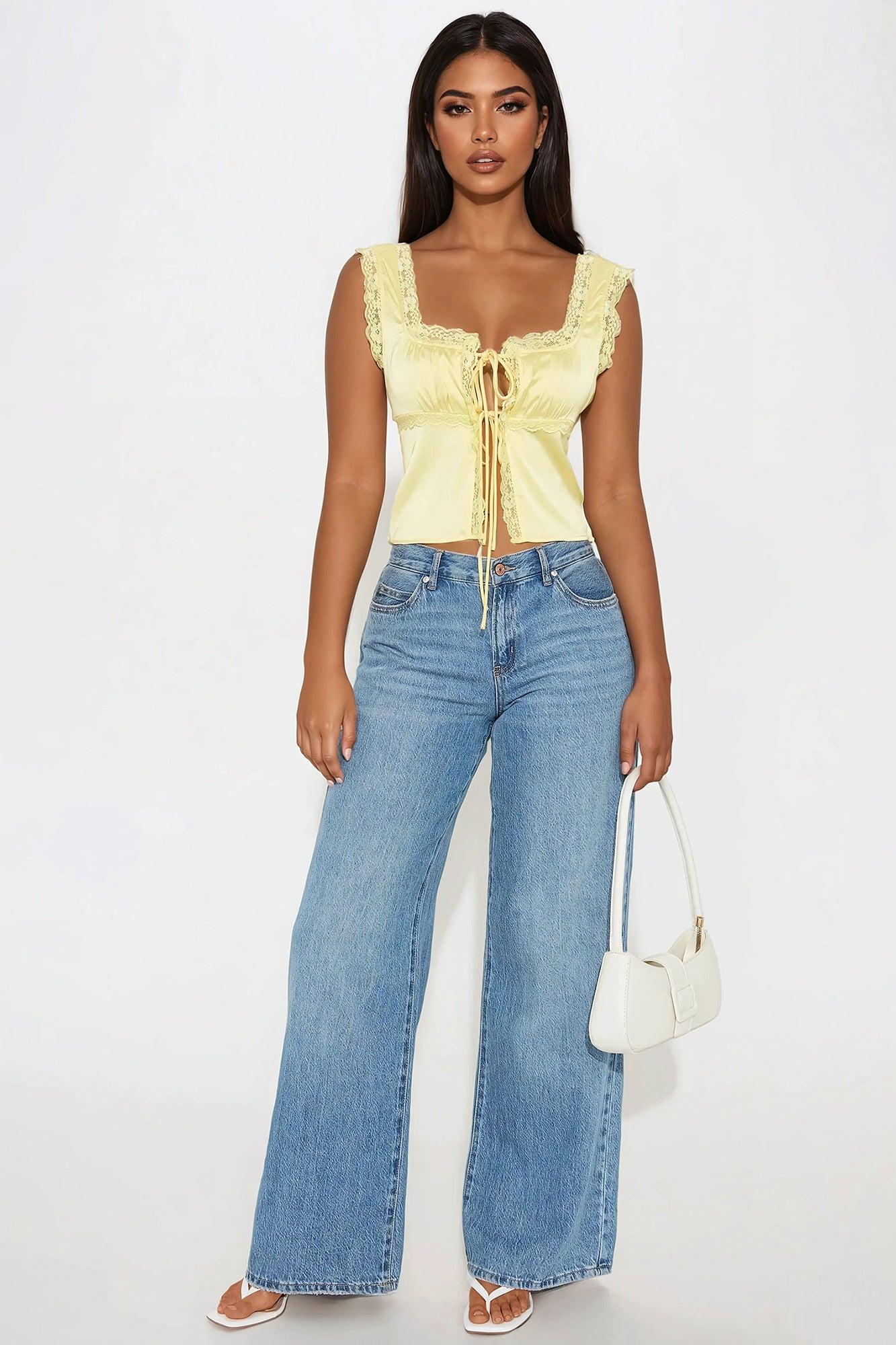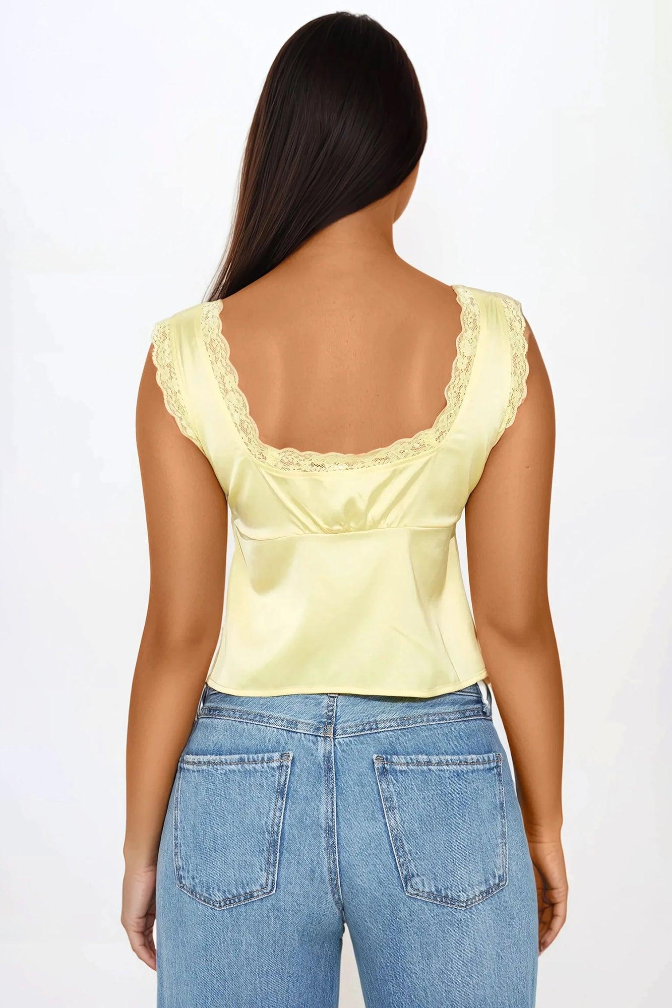 Leida Satin Flyaway Top - Yellow