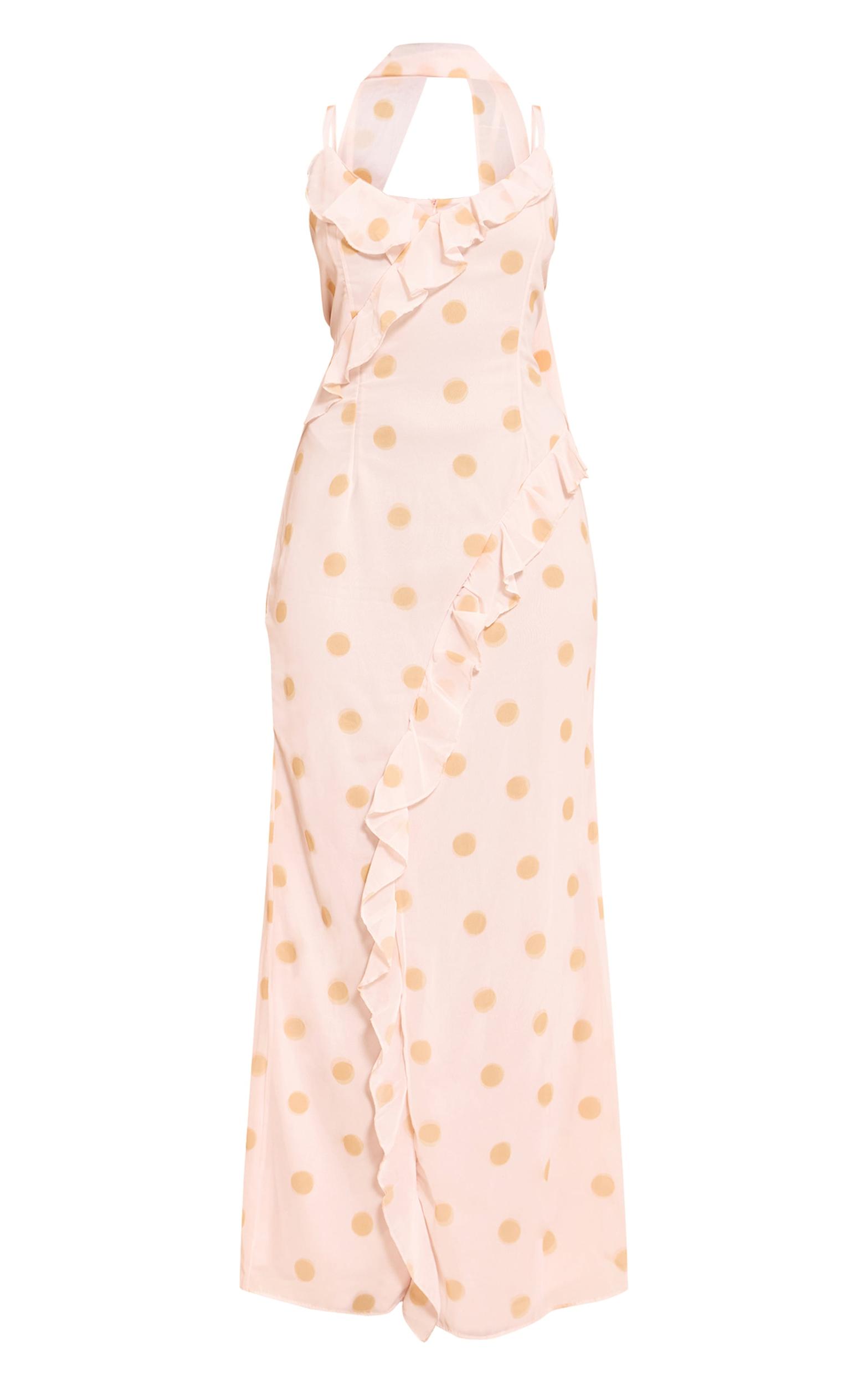 Embrace timeless charm with the lemon polka dot printed chiffon frill details strappy maxi dress. This dress features airy chiffon fabric adorned with classic polka dots, complemented by delicate frill detailing and adjustable straps. Complete the look with wedge sandals and a sunhat for a chic daytime outfit.Length approx 155cm/61inch (Based on sample size US 4)Model wears size UK 8/ EU 36/ AUS 8/ US 4Model Height - 5ft 7inchp]:!mb-4inch>Brand: PrettyLittleThingCategory: DressesProduct type: Shift DressColor: LemonMaterial: ChiffonNeckline: PlungeSleeves: Spaghetti StrapOccasion: Occasion