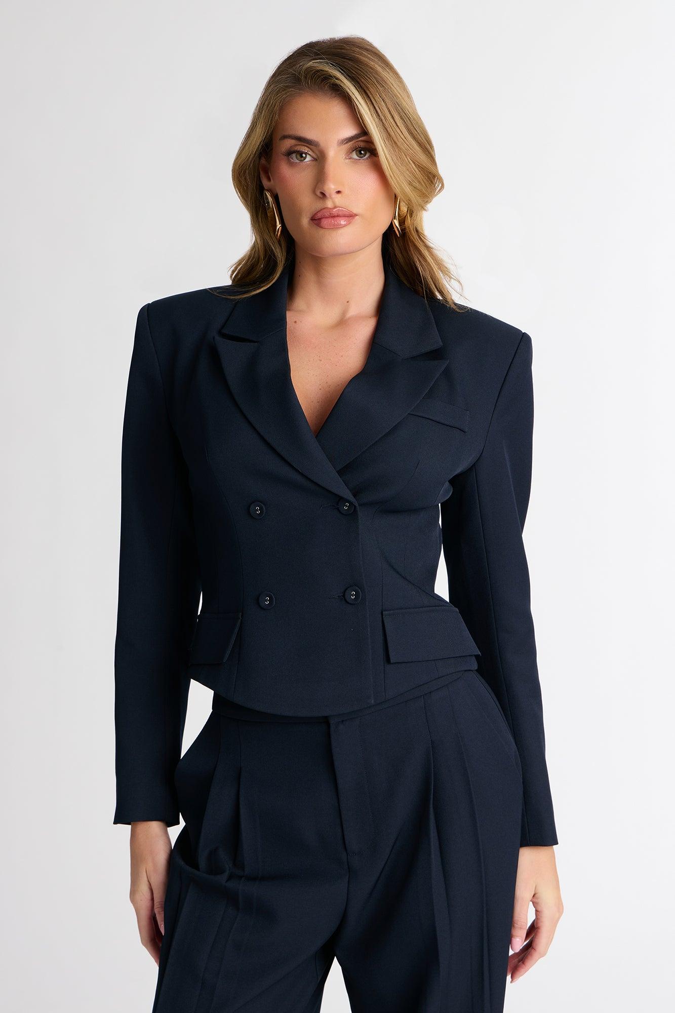 Lena Cinch Waist Blazer And Wide Leg Pant Set - Navy Female