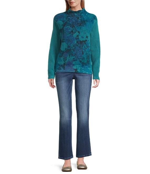 Leo & Nicole Floral Mock Neck Long Sleeve Waffle Acid Wash Knit Top