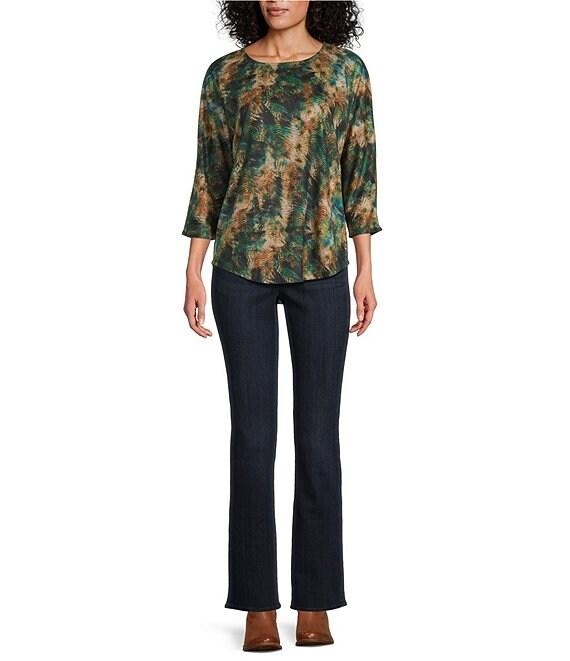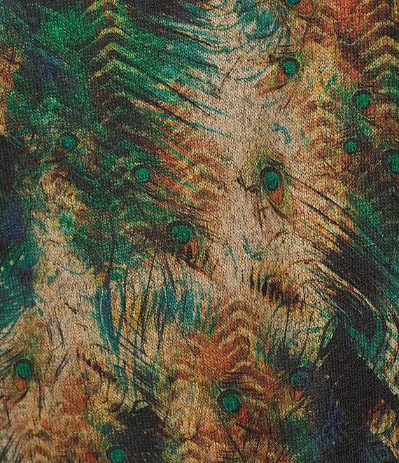 Leo & Nicole Hacci Knit Peacock Express Print Crew Neck 3/4 Dolman Sleeve Top