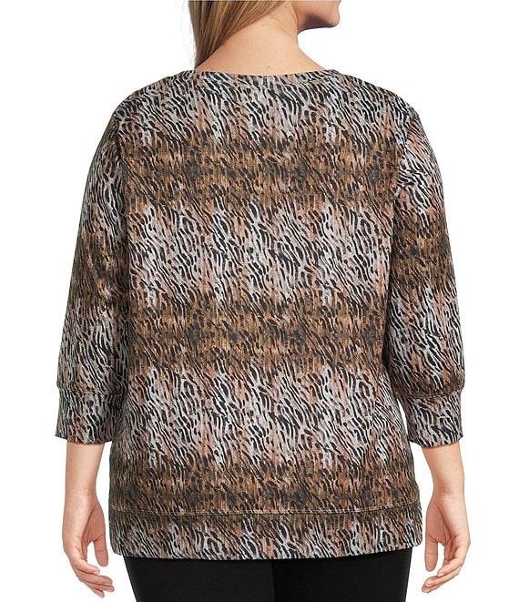 Leo & Nicole Plus Size Hacci Knit Zebra Strike Print Crew Neck 3/4 Sleeve Top
