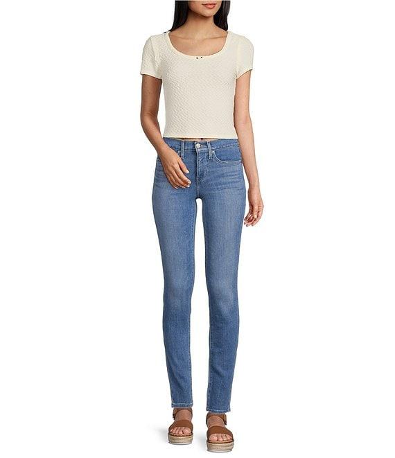 From Levi's®, these jeans feature: Stretch denim fabrication Mid rise Slim leg 5 pocket style Belt loops Button/zip fly Approx. 30" inseam; 9.25" front rise; 15.125" back rise Cotton(generic)/viscose(lenzing ecovero)/elastomultiester(t400)/elastane(lycra) Machine wash Imported.