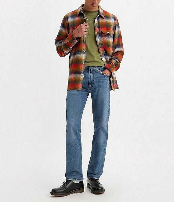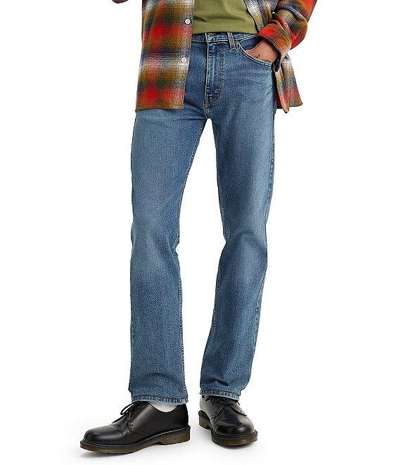 From Levi's®, these jeans feature:Sits at your waistZip/button-front closureBelt loopsRegular fit through the thighsStraight legs5-pocket stylingTapered silhouette11.5" front rise17.5" knees16" leg openingsCotton/polyester/elastane denimMachine wash/tumble dryImported.