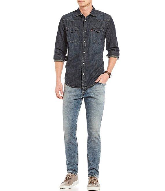 From Levi's®, these jeans feature:Stretch denimzipper/button closureSits below waist - 10.75" riseSlim through thighTapered leg - 12.75" openingMeasurements based on a size 32cotton/elastanemachine wash/tumble dryImported.
