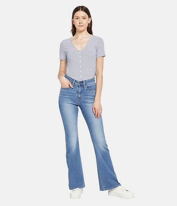 From Levi's®, these jeans feature: Mid-rise Easy fit through the hips and thighs Straight flare legs 5-pocket styling Zip/button-front closure Approx. 30", 32" inseams stretch Cotton/elastane denim Machine wash/tumble dry Imported.