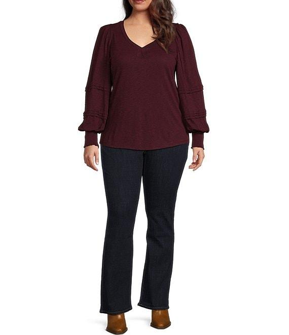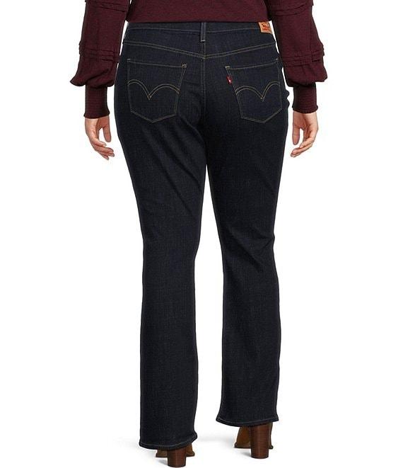 From Levi's® Plus, these jeans feature: bootcut silhouette mid rise waistband 5-pocket style belt loops on waistband button and zip fly closure approx. 32" regular inseam, 34" long inseam; 20" leg opening; 10.75" front rise; 17.87" back rise cotton/polyester/elastane machine wash Imported.