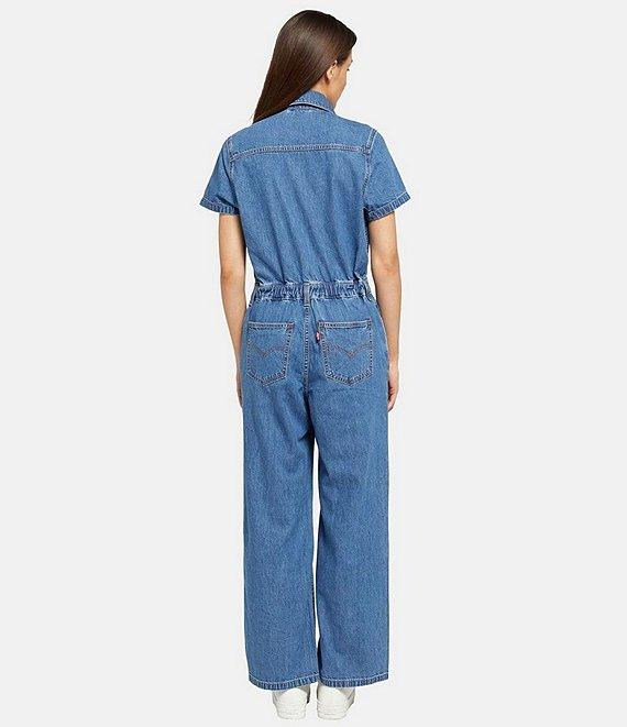From Levi's®, this jumpsuit features: Collared neckline Short sleeves Button closure flap pockets Partial button front Belt loops Button-closure flap pockets Two front side pockets Two back pockets Standard fit Cotton Machine wash/tumble dry Imported.