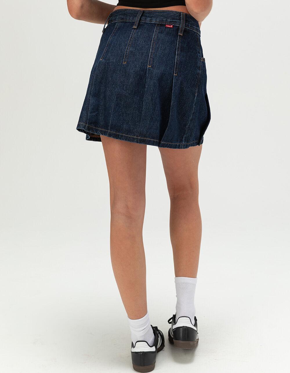 Levi's Pleated Mini Skirt - Remember Together. A flattering mini skirt that adds a touch of polish. Levi's Pleated Mini Skirt sits right at your waist and features a mini length with a tailored, pleated design. 5-pocket styling. Mid rise - CF: 14.5". Button closure with zip fly. 95% Cotton 5% Recycled Cotton. Machine wash. Imported.