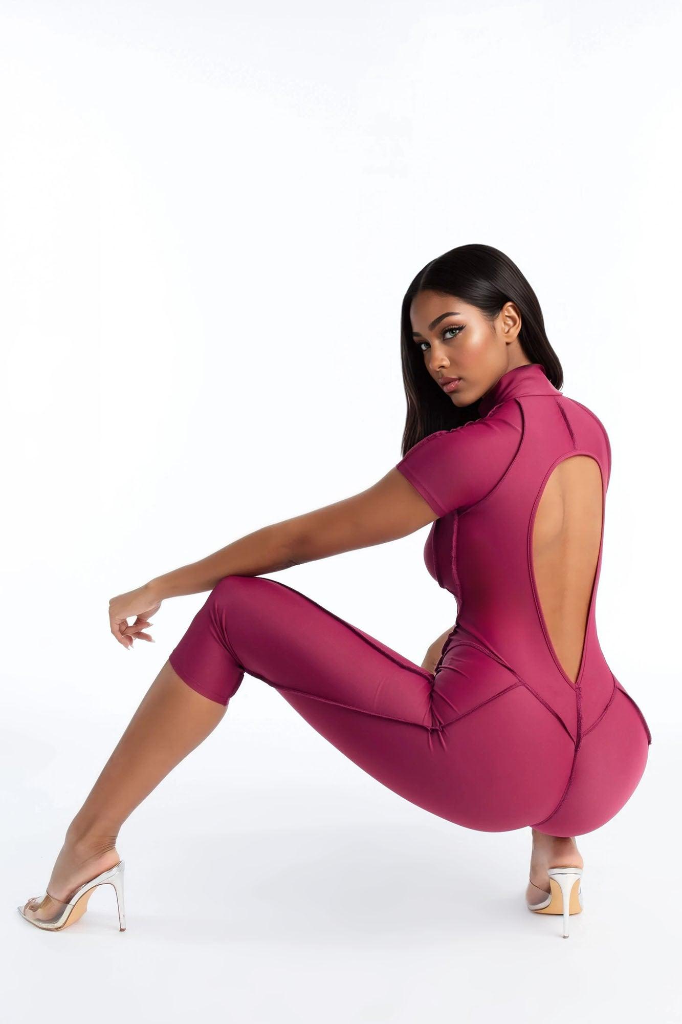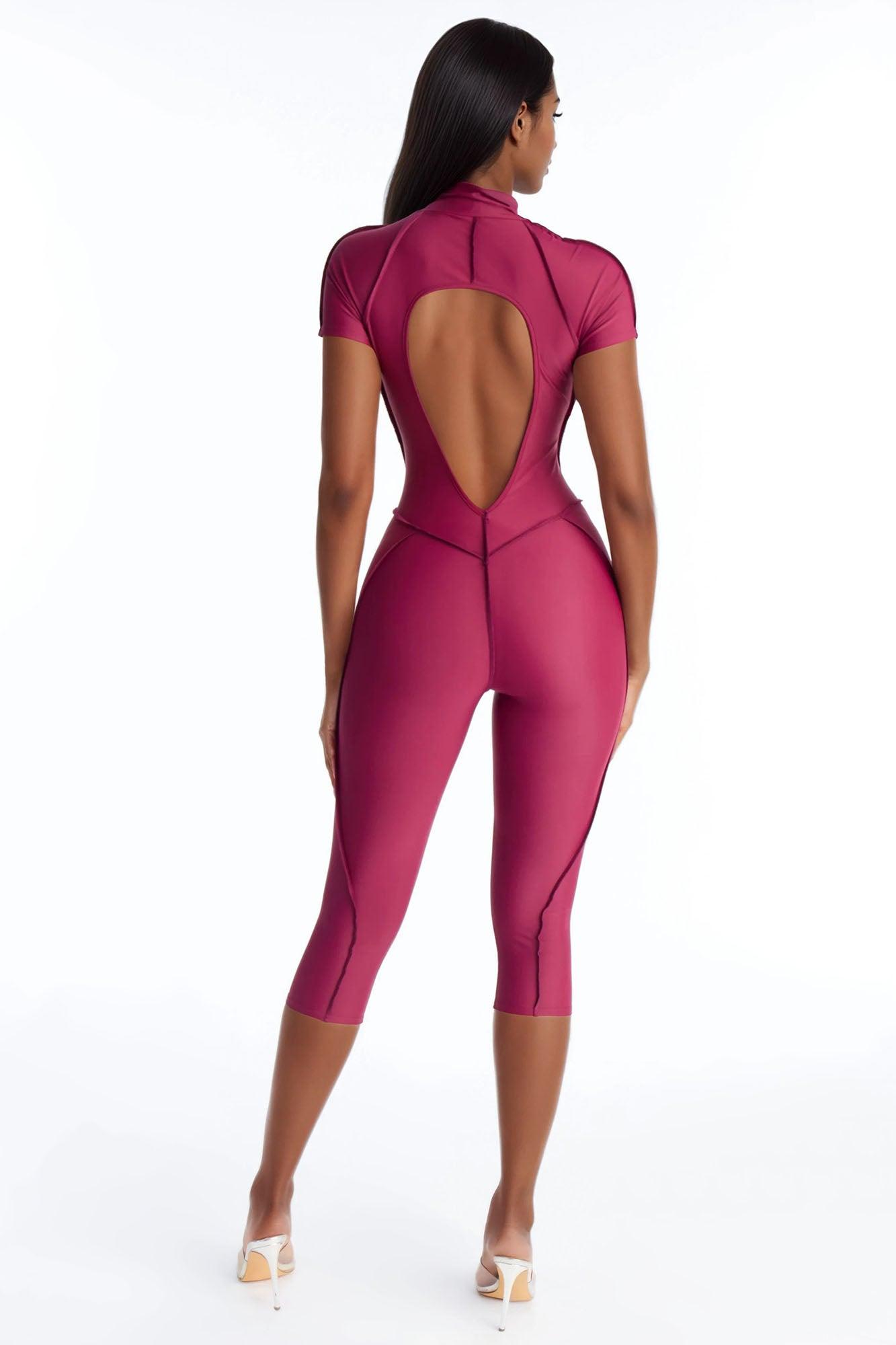 Lexia Backless Capri Leg Jumpsuit - Burgundy Female